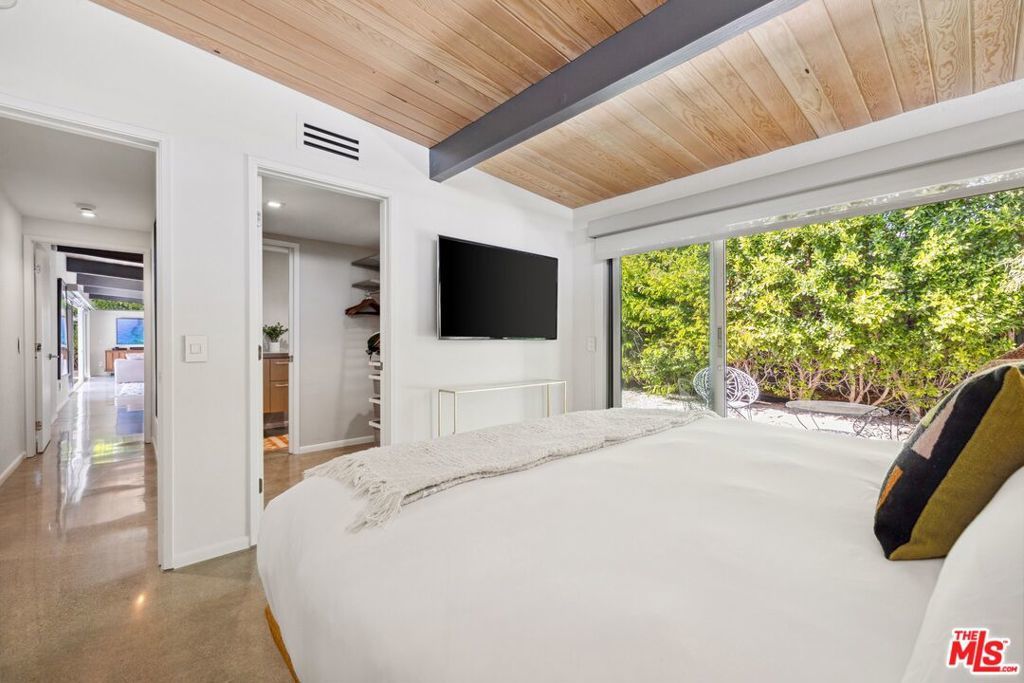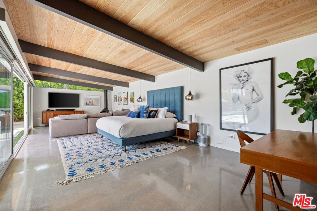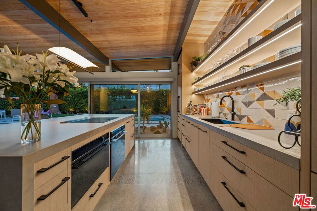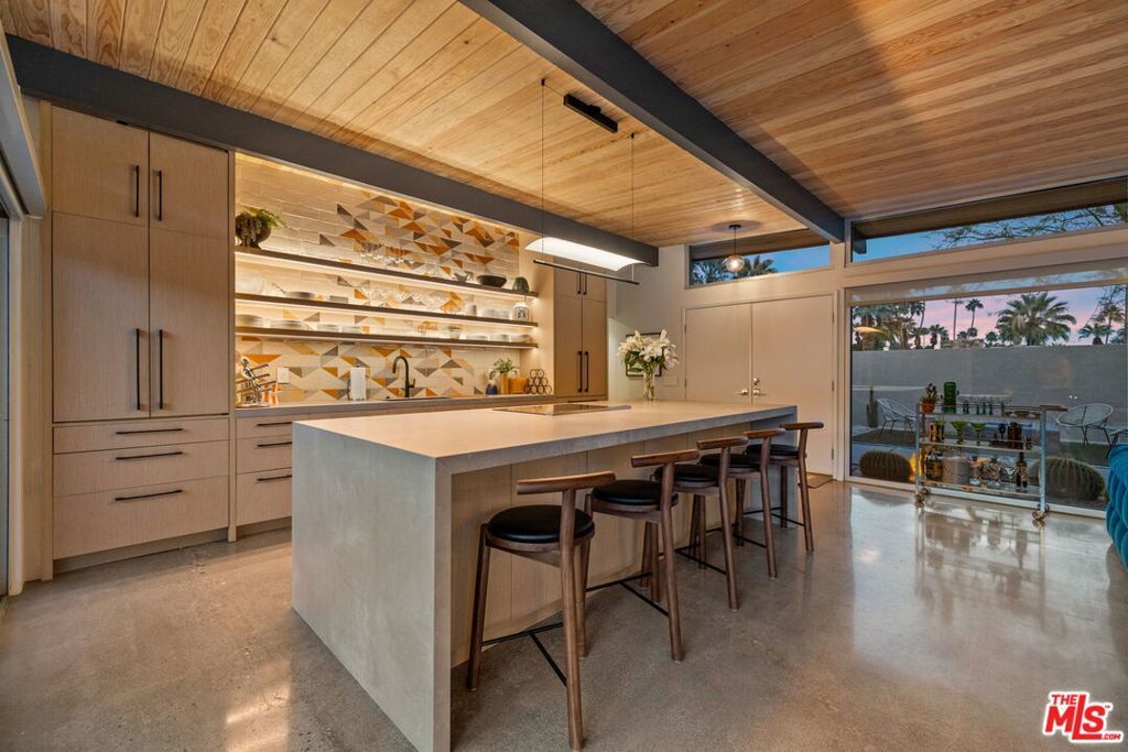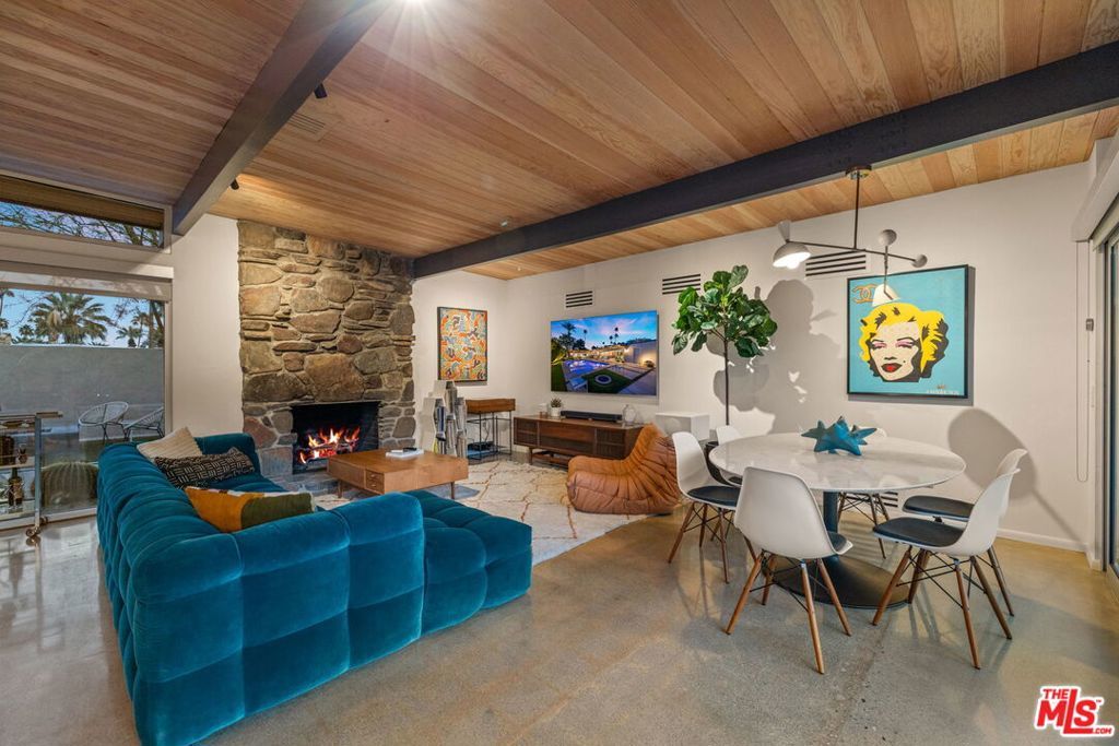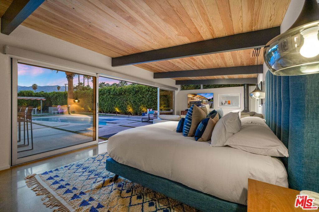 AVAILABLE DEC., JAN., APRIL, MAY | Iconic Style, Modern Luxury Seasonal Rental in Central Palm Springs. Step into the Palm Springs dream with this meticulously remodeled 1958 Alexander, where iconic mid-century modern design is seamlessly elevated with today's luxuries. Situated on a private corner lot in the heart of central Palm Springs, this 3 bed | 3 bath home offers jaw-dropping views of the San Jacinto mountains and the ultimate seasonal escape. A gated courtyard with fire pit and lounge area sets the tone for desert living at its finest. Inside, a dramatic double-door entry opens to walls of glass framing the sparkling pool, lush landscaping, and endless skies. The open-concept floor plan with vaulted ceilings creates a light-filled space ideal for entertaining. The designer-renovated kitchen features a custom island, professional-grade appliances, built-in refrigerator, and striking tile backsplash. The principal suite includes a cozy sitting area with fireplace, roller shades, and direct pool access. Newly remodeled bathrooms showcase Zia Cantera Tile, custom cabinetry, and modern fixtures, blending style and comfort. Each guest bedroom offers its own private outdoor patio, while the home is equipped with TVs in all bedrooms and the main living area for convenience. Outdoors, relax on the tanning shelf of the sparkling pool, unwind in the inset spa, or gather with friends around fire features. An outdoor bar, BBQ, covered dining patio, and multiple lounge zones create an entertainer's paradise. Mature hedges, swaying palms, and desert plantings provide resort-like privacy. Additional highlights include a rock-faced indoor fireplace, interior laundry, and ample space to host or simply relax. Just minutes from downtown Palm Springs, this home delivers everything a seasonal renter desires: iconic architecture, resort-style amenities, privacy, and unbeatable location. Escape the cold and indulge in your slice of Palm Springs paradise. HURRY THIS ONE WON'T LAST!