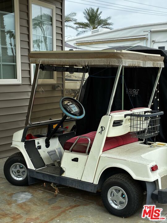 This is well kept with upgraded flooring and open living space. The patio is partial enclosed off the back, creating a wind break and some outdoor privacy. It is located on the wall with a small back walkway with your shed at the foot of the stairs. The patio is set up for afternoon entertaining. It includes golf cart for scooting around the community. This all located in a 55+ community that has a 3 par golf course, chipping green, putting green, 9 hole mini golf, pickleball and tennis courts, bocce ball, an indoor shuffleboard courts, 2 clubhouses with pools and jacuzzies and an additional 4 satellites with pool, jacuzzies and mail boxes. This is all within a 24 hour gate guarded community of 801 lots, that consist of a combination of Park Models and RV lots, where you own the land. The resort has a limit of 270 day occupancy. It is a perfect place to spend your holidays in the sunshine.