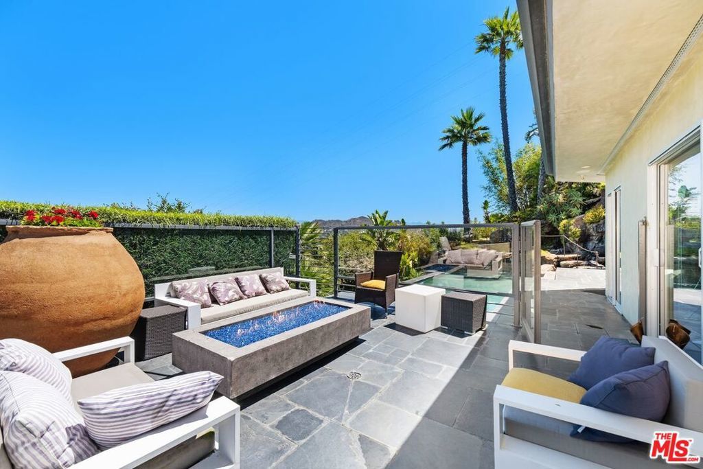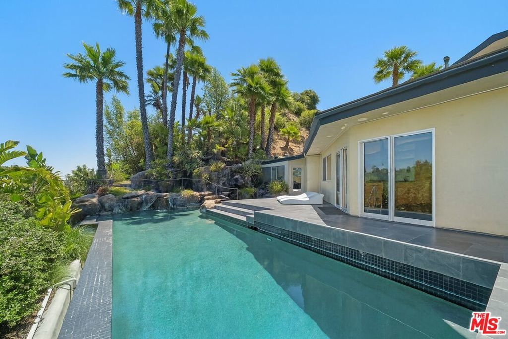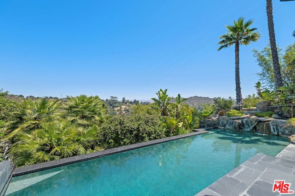 RESORT-STYLE HIDEAWAY WITH ABSOLUTE PRIVACY AT THE TOP OF A MOUNTAIN IN THE HOLLYWOOD HILLS. As you arrive at the end of a private road, tranquility sets in. The gates open to reveal a contemporary estate perched high on a hilltop promontory. Step inside and sweeping canyon views immediately remind you that you're above it all. Polished stone floors guide you through nearly 3,000 square feet of curated luxury, where light pours in through massive sliding glass doors. The modern kitchen flows into the living space, blurring the line between indoors and outdoors. Step onto one of several private terraces and hear the soft sound of a waterfall drawing you deeper into the retreat. Three spacious bedrooms, including two primaries, each feature ensuite baths and private vistas. The loft offers a serene nook for reading, working, or simply taking in the landscape, and can also serve as a fourth bedroom. A discreet safe room provides peace of mind, while upscale finishes highlight thoughtful design and attention to detail. Outdoors, lush landscaping frames multiple lounge areas that feel like secluded cabanas. At the center is a dramatic infinity-edge lagoon pool with a two-story waterfall and spa. Whether it's a morning swim, an afternoon of sunbathing, or an evening entertaining under the stars, the setting offers unmatched peace and indulgence. This isn't just a residence, it's a private sanctuary above Los Angeles, where every element has been designed for comfort, security, and style. Don't miss the opportunity to experience true resort living in the Hollywood Hills. Available fully furnished for lease.