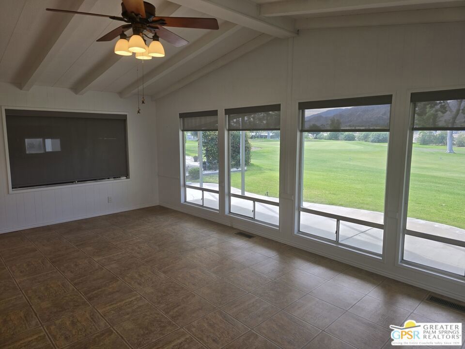 Come see this 2bed/2bath 1440 sq ft home with an open, easy flow floor plan with GREAT views of golf course and mountains. Vaulted ceiling in LR and Dining Area adds to the "open feel" of this home. Kitchen features granite composite counters with a raised 4burner gas cooktop accented with a large breakfast counter. The black matte appliances meld in perfectly with the granite counters. Flooring consists of tile in kitchen, both bathrooms and laundry area, laminate in Family Room and Guest bedroom, Vinyl in Primary Bedroom plus LR/Dining Area. There's an expansive LR (has privacy solar shades)/Dining Area and off the kitchen is a Family Room with wet bar. Slider in Family Room leads to a very private, lush green foliage patio area with hot tub as its center of enjoyment. Both bedrooms feature not only double or triple wide closets but also each has walk in closet. Home has a nice energy conserving tankless water heater and HVAC system and roof have been meticulously maintained, as has all features of this home. There is pride of ownership that shines throughout the home and its exterior features as well. Make this YOUR HOME and enjoy this 55+ Active Adult, gate guarded community with 18 holes of golf, on-site restaurant, multiple pools/spas, tennis/pickleball courts,, community RV parking,,even a doggie park. Casino only minutes away and many local shopping/restaurants to choose from + CV Rep Theater & Mary Pickford Cinema to enjoy. All this homes to make it extra special is YOU!!