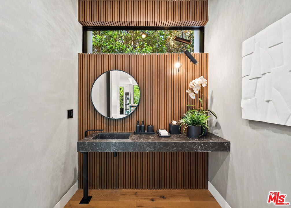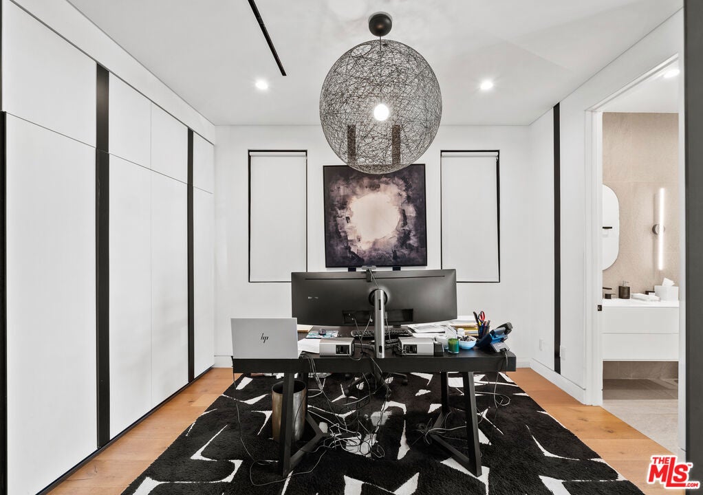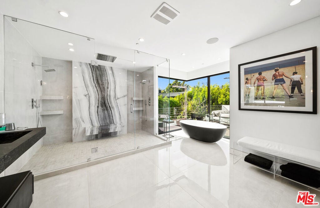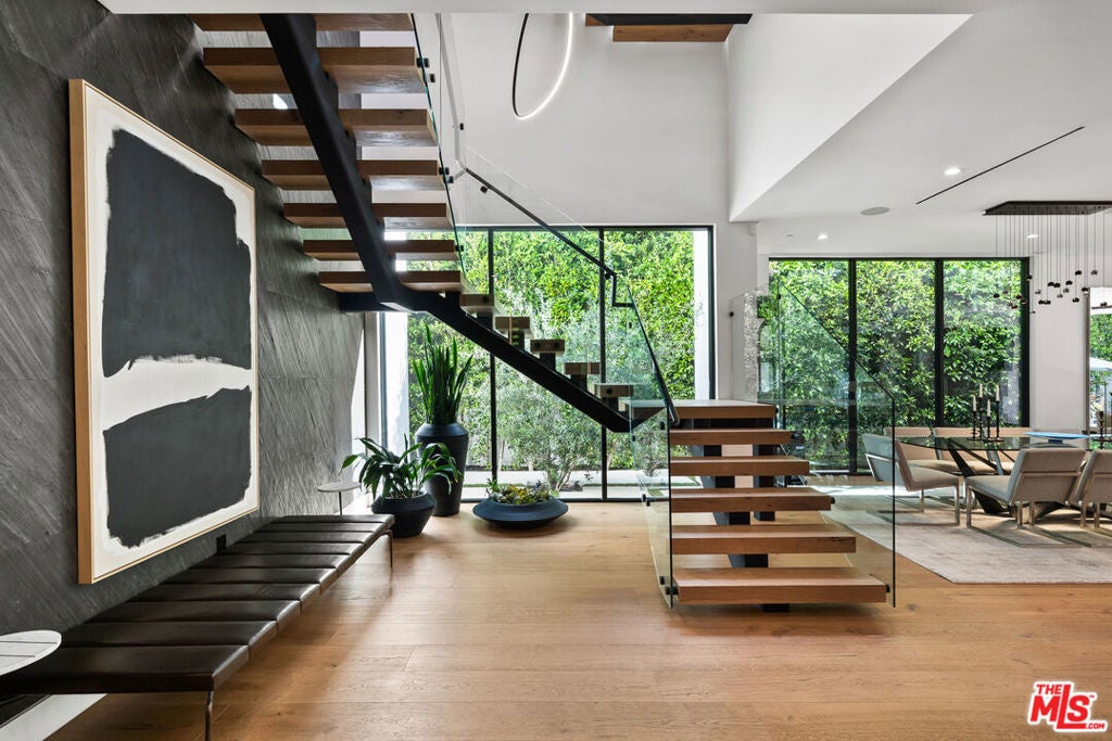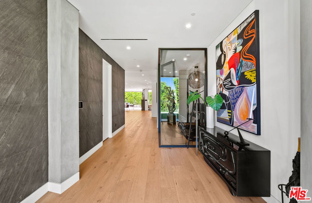 Experience the Top of modern luxury in this newer construction home in coveted Beverly Grove. Step inside to find an open-concept, light-filled space featuring striking natural stone finishes and wide plank wood flooring throughout. The Italian kitchen is ideal for hosting and includes marble waterfall countertops and world-class appliances. Indulge the indoor/outdoor lifestyle in the spacious living area with pocket doors opening to the resort style grounds. A floating staircase leads to the spa-inspired primary suite with a dressing room, 2-way fireplace, soaking tub, dual rain shower, and a private deck. Enjoy 360 city light views on the expansive rooftop deck, or entertain on the grounds with zero-edge pool and spa, fireplace, and outdoor kitchen. 3 additional en-suite bedrooms offer plenty of space, while a private office is ideal for remote work. Located just steps from L.As best dining and entertainment, this designer home redefines luxury cosmopolitan living.