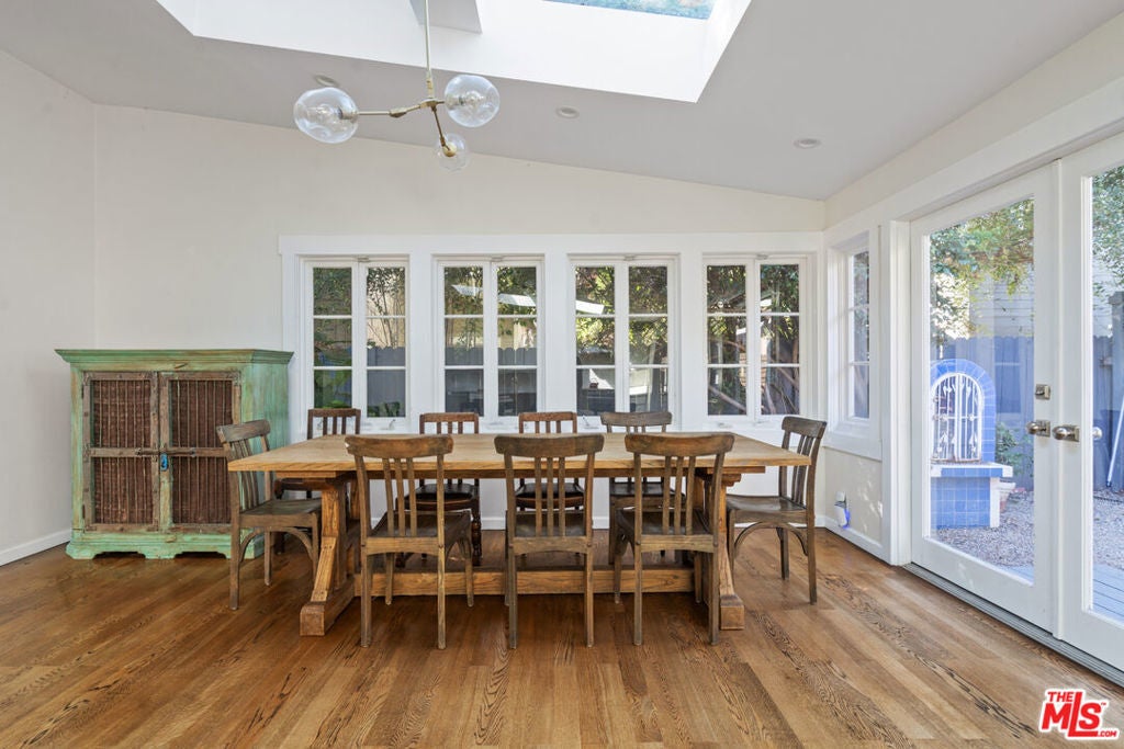 Charming Craftsman on Electric Your Private Venice Sanctuary! Flooded with natural light from multiple skylights, this beautifully updated 3-bedroom, 2-bath California Craftsman bungalow perfectly blends timeless character with modern comforts. White walls and warm hardwood floors create a breezy, beach-inspired ambiance, while pitched ceilings and exposed beams showcase classic architectural charm. The updated kitchen and bathrooms offer modern convenience, while two sets of French doors open seamlessly to a spacious private outdoor retreat featuring a shaded pergola and a flourishing grapefruit tree. This home also includes a brand new washer/dryer and one parking spot. This gated compound offers peace and privacy just moments from the beach, and only a short stroll to the boutiques, dining, and nightlife of Abbot Kinney. Includes one dedicated parking space.