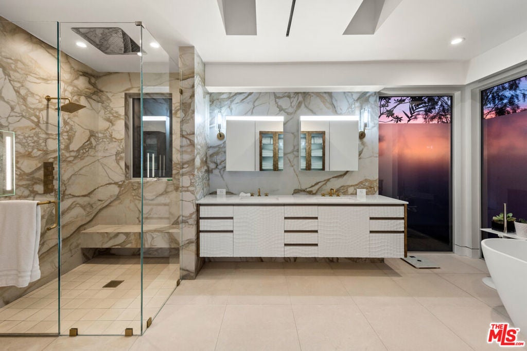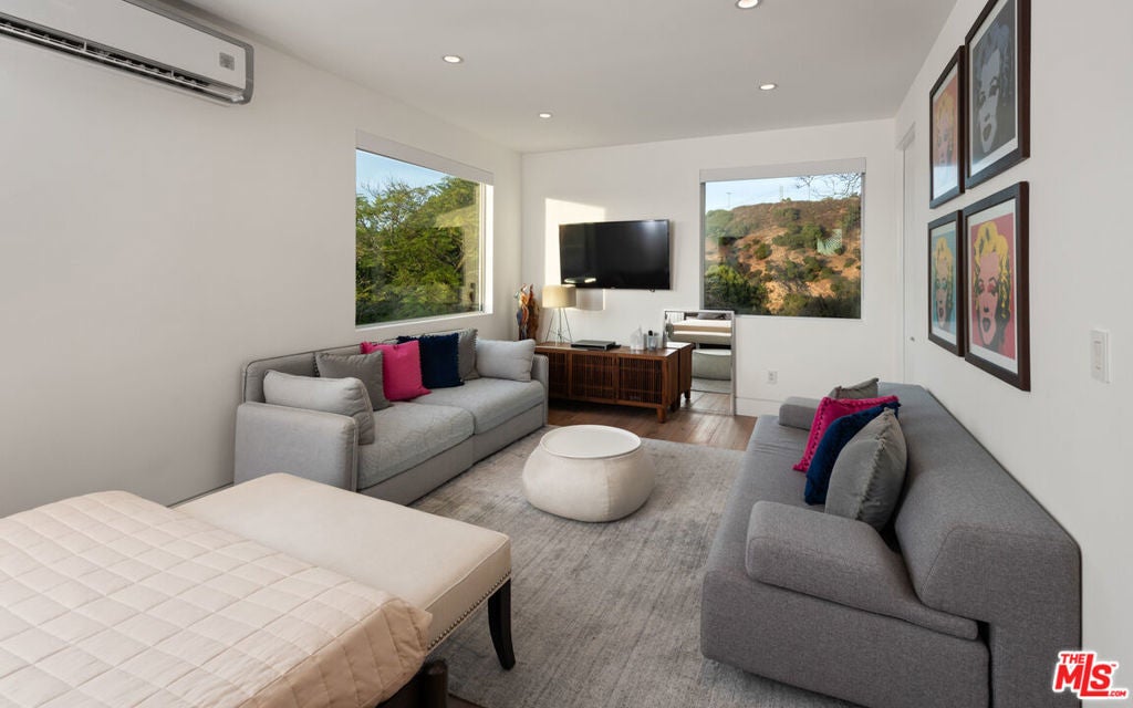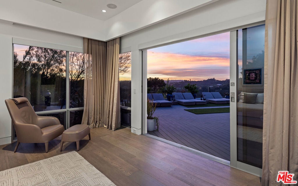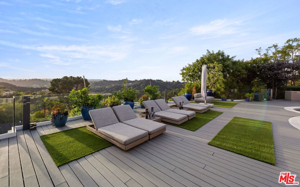 Exquisitely furnished!! Gorgeous, gated & private modern style home in the hills with a guest house. This fully furnished 5 bedroom & 6 bathroom beauty features an open layout, 12-foot-high ceilings, hardwood/stone floors & Fleetwood sliding glass doors. The gated entrance features a courtyard, waterfall and a large secure door. The serene panoramic views of the home compliment the great outdoor living space which includes a built-in BBQ & large saltwater pool & spa. Gourmet kitchen includes sleek Italian designed cabinets, top of the line appliances and a luminous skylight. Large bedrooms with en-suite bathrooms throughout, with tons of closet space made with the finest materials. Separate guest house /office/creative space with its own bathroom above the 2-car garage. Smart home equipped with Control 4.