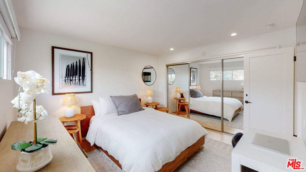 Step into coastal elegance with this sun-drenched, designer-remodeled one-bedroom, one-bathroom condo, ideally located on the sands of Malibu's coveted Carbon Beach. This top-floor residence boasts breathtaking natural light, open-sky views, and a seamless blend of modern luxury and coastal charm.The brand-new gourmet kitchen is a chef's dream, featuring high-end stainless steel appliances, a Thermador professional-grade stove, a Viking hood, and a dedicated wine refrigerator. The newly designed bathroom showcases stylish tilework and premium fixtures, while the custom-designed master closet offers exceptional storage solutions. Gorgeous hickory whitewashed hardwood floors extend throughout the space, complementing the warmth of a gas fireplace. Additional floor-to-ceiling built-in storage adds both functionality and sophistication.The complex itself is a private oasis, complete with an ocean-facing heated pool, communal BBQ areas, a newly remodeled lobby, an elevator, and secure gated entry. Enjoy direct beach access, covered garage parking, and effortless proximity to Malibu's finest restaurants, high-end boutiques, a health club, a movie theater, grocery stores, and the iconic Malibu Pier.Surrounded by multi-million-dollar oceanfront estates and lush landscaping, this exclusive retreat offers a rare opportunity to experience the best of Malibu beachfront living. Designer furniture may be available for purchase.Don't miss your chance to own a piece of paradise on Billionaire's Beach!