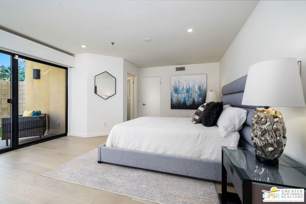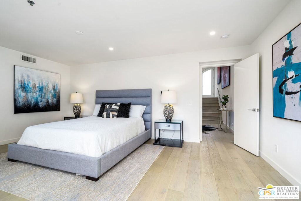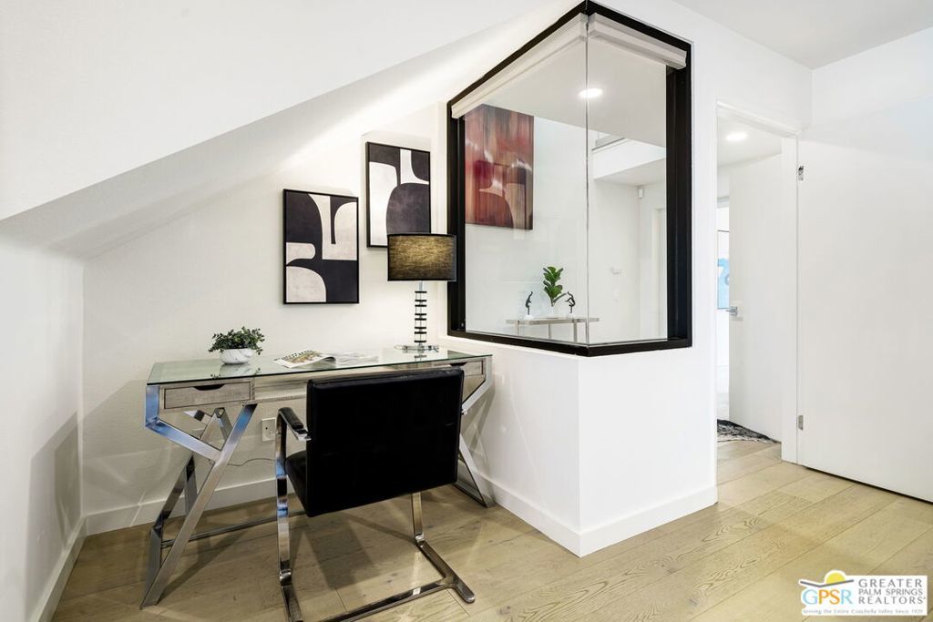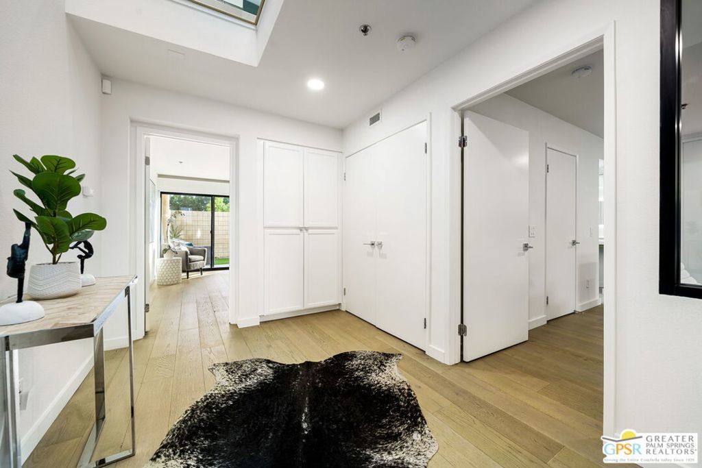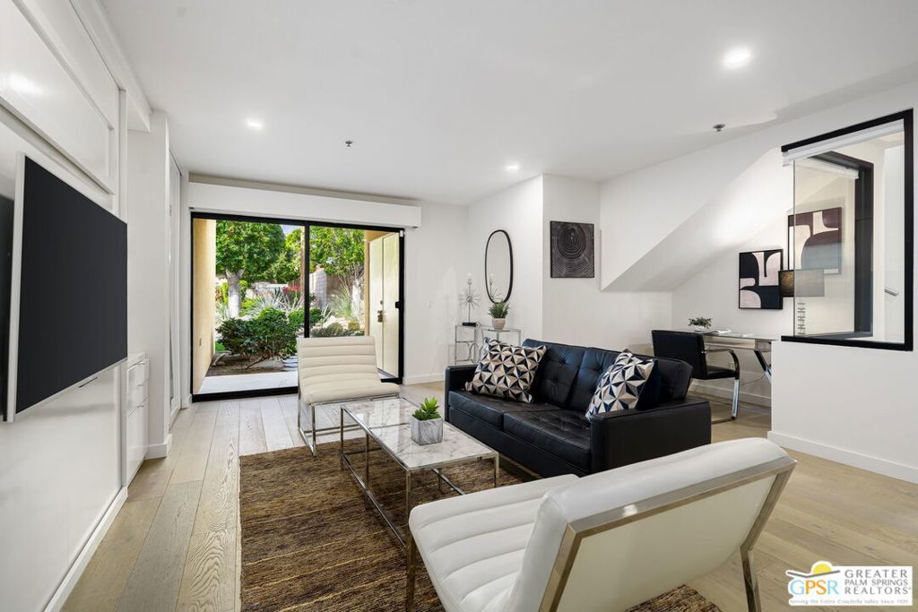 Experience the pinnacle of modern desert living in this newly completed 2-bedroom, 2.5-bathroom home, where sophisticated design meets breathtaking mountain views. Spanning two stories, this architectural gem features glass railings, and large glass windows and doors create a seamless flow between indoor and outdoor spaces. The open-concept kitchen, dining, and living areas are bathed in natural light. Located just moments from downtown Palm Springs, the Uptown Design District, and world-class dining, this exclusive, secure, and secluded clothing-optional community offers a private retreat for those seeking both sophistication and relaxation.