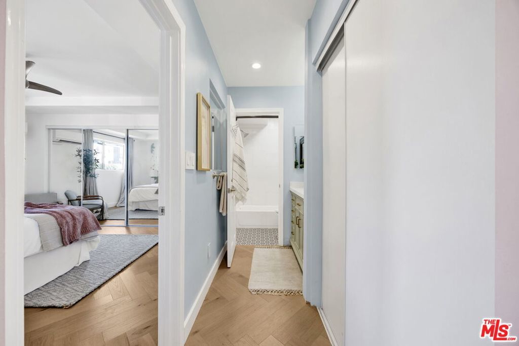 Welcome to this beautifully remodeled 1-bedroom, 1-bathroom condo offering a stylish blend of modern updates and functional design. The open layout is filled with natural light and features herringbone hardwood floors, a convenient study nook, and recessed lighting. The updated kitchen is complete with newer cabinets, stainless steel appliances (refrigerator, dishwasher, microwave, and electric stove), and a reverse osmosis water filtration system. The bathroom showcases Neo-Moorish tile, a modern vanity, and a TOTO toilet with bidet attachments. Additional upgrades include in-unit laundry, new A/C split systems, a designer ceiling fan, and a coffered ceiling in the bedroom. A private balcony provides an outdoor extension of the living space. Located in the heart of Hollywood, with a partial view of the iconic Hollywood Sign landmark, this residence offers proximity to dining, entertainment, and shopping.