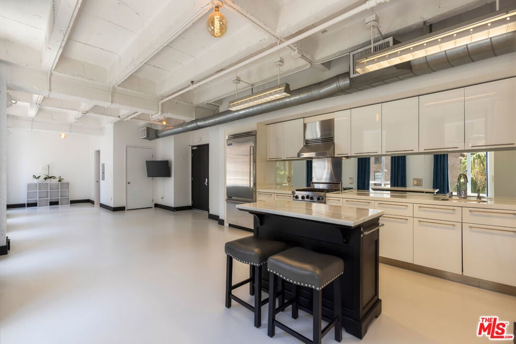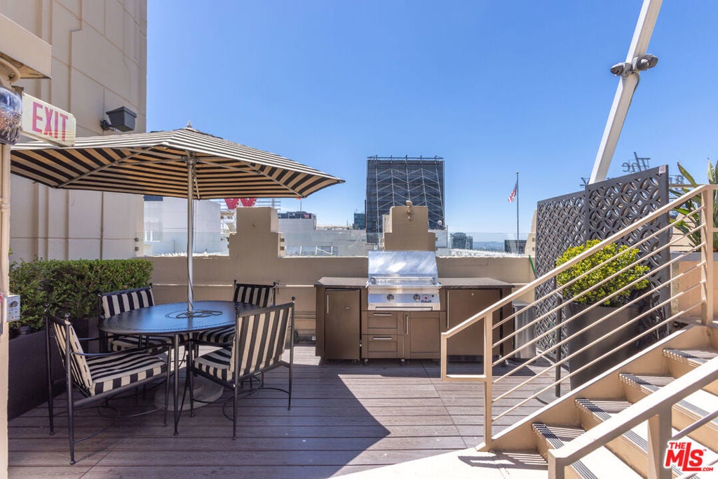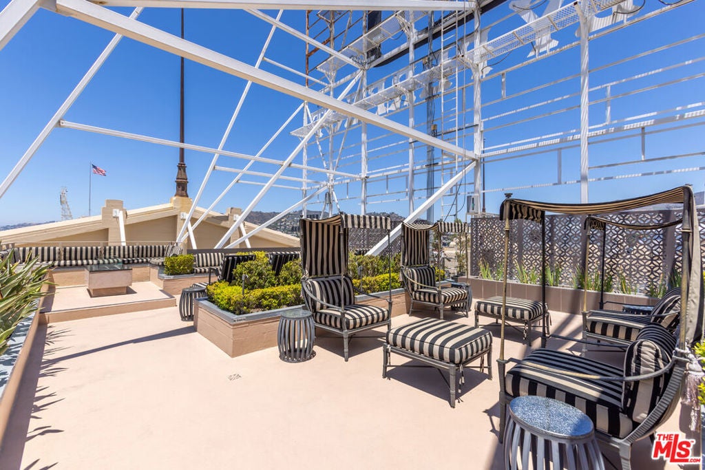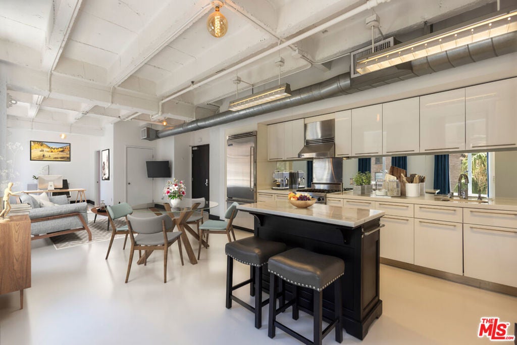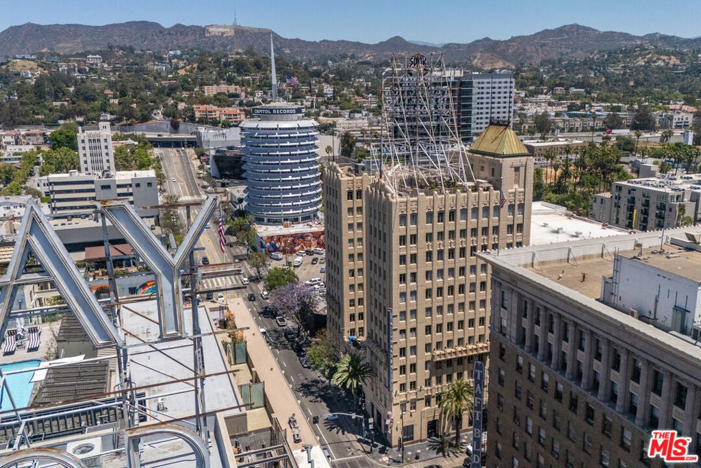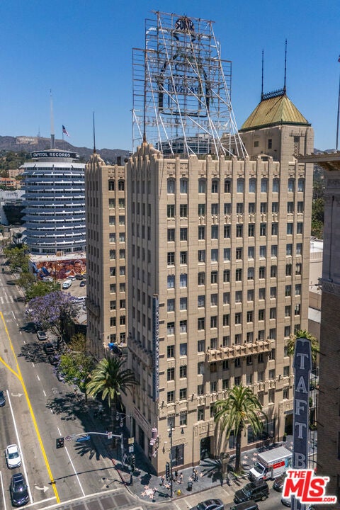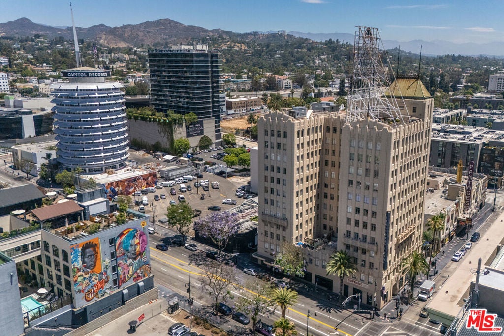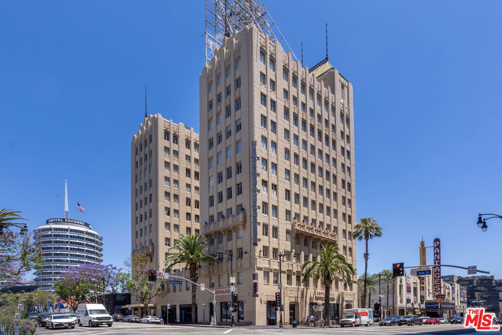 Soaring ceilings, streaming sunlight, and sweeping views define this stunning corner loft, in the historic 1929 Equitable Building at the legendary intersection of Hollywood and Vine. Featuring a spacious, open-concept design where natural light pours in from every angle, the expansive main living space flows effortlessly into the dining area and sleek, modern kitchen, ideal for hosting and entertaining. Fully equipped with premium stainless steel Viking appliances (including a dishwasher) and modern cabinetry, the kitchen is perfect for home cooks and entertainers alike. Just off the main space, you'll find the second bedroom, ideal for a home office, home gym, artist's studio, or even a guest bedroom. Adjacent to this space is a full bath with a deep soaking tub, offering spa-like comfort in the heart of the city. Tucked quietly beyond the kitchen is the serene primary suite, sunlit and generously sized, with an elegant ensuite bath featuring a walk-in shower and designer finishes. Water, trash, electricity, and gas are INCLUDED in the HOA fees. Designated under the Mills Act, this historic building offers the rare advantage of dramatically reduced property taxes. Additional amenities include: Washer-Dryer hookup in unit; 24-hour doorman; 24-hour valet parking (one space included); TWO large storage spaces; and access to a spectacular rooftop lounge complete with a fire pit, BBQ, dining area, and 360-degree views featuring the Hollywood sign, Capitol Records, Pantages Theatre, the Hollywood Hills, and more. Located just above The Birdcage and across the street from Katsuya, the W Hotel, and others, you are a short walk to Equinox, Barry's Bootcamp, and Trader Joe's, with coffee shops, restaurants, and nightlife in every direction. Stroll to Jemma, Lemon Grove, and Mother Wolf, or catch a show at the Pantages and pick up records at Amoeba Music just a block away. With the Metro station across the street, your commute to DTLA is effortless. Experience elevated urban living with iconic views, timeless character, and every luxury at your fingertips. This is Hollywood reimagined, and it is waiting for you.