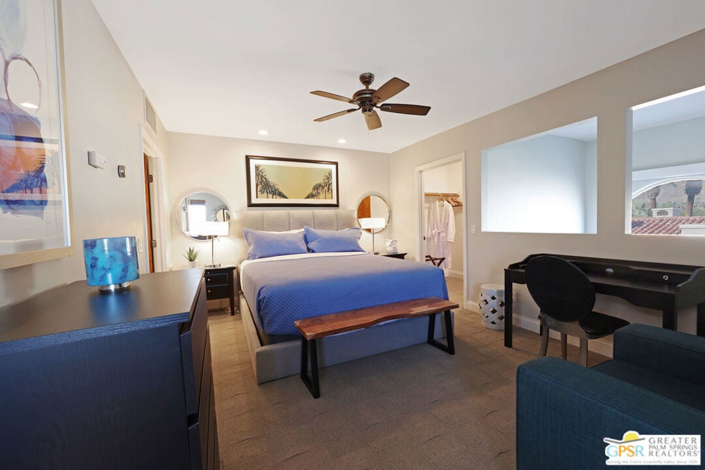 Discover location, lifestyle, and limitless potential at 400 N Avenida Caballeros #10, a designer condo in the historic La Mancha Villasonce a Palm Springs hideaway for the rich and famous. Now known as Ventanas Del Sol, this exclusive complex combines mid-century flair with modern comfort in the heart of downtown.Step inside to soaring vaulted ceilings, dramatic mountain views, and a stylish open-concept living area perfect for entertaining or unwinding after a night at the nearby casino, shops, and fine dining. Outdoors, your private patio with spa invites you to relax and soak in the desert lifestyle.With unlimited short-term rental potential and no minimum stay requirements, this is not only a dreamy pied--terre but also a high-performing income property. A brand-new 2-ton AC system (installed September 2025) ensures year-round comfort and energy efficiency.Whether you're seeking a vacation getaway, a luxury rental investment, or your full-time Palm Springs escape, this home checks every boxstyle, income, and location.