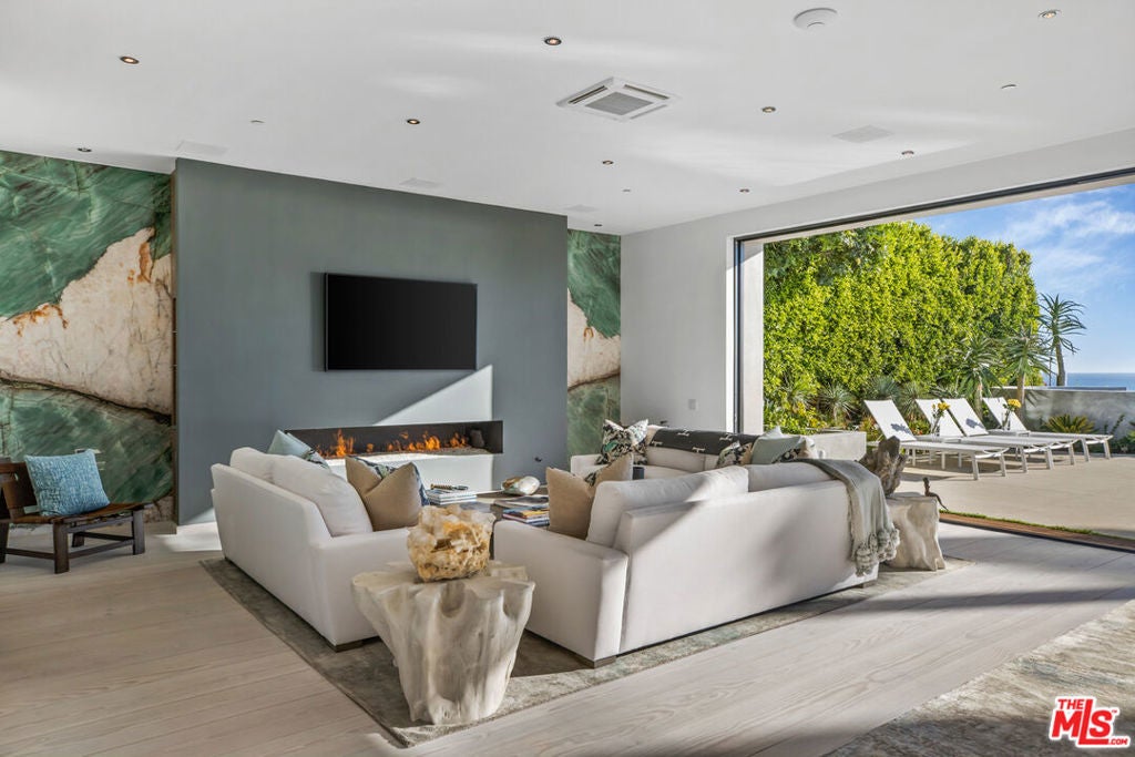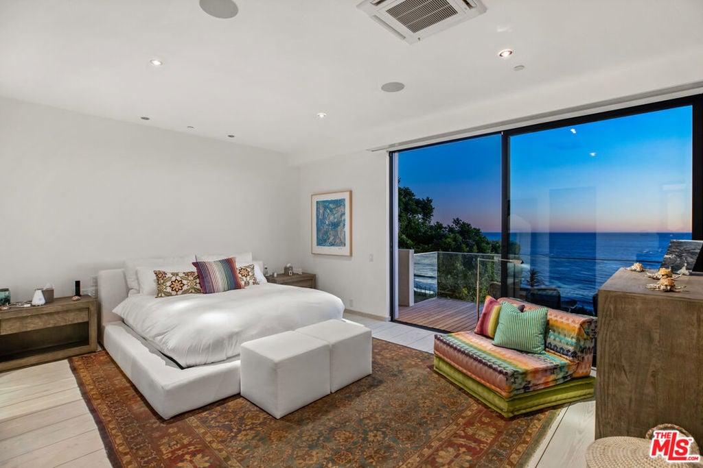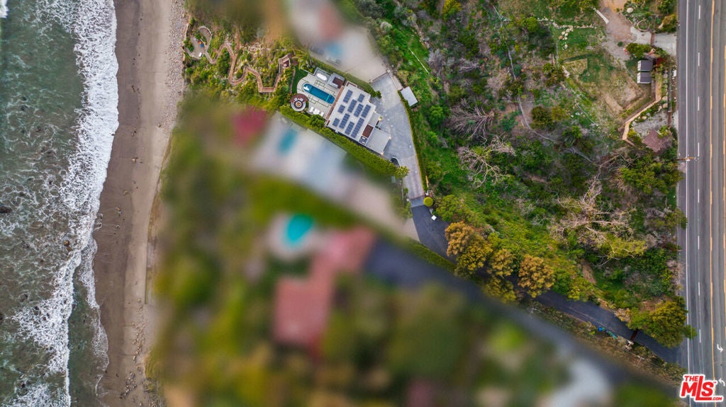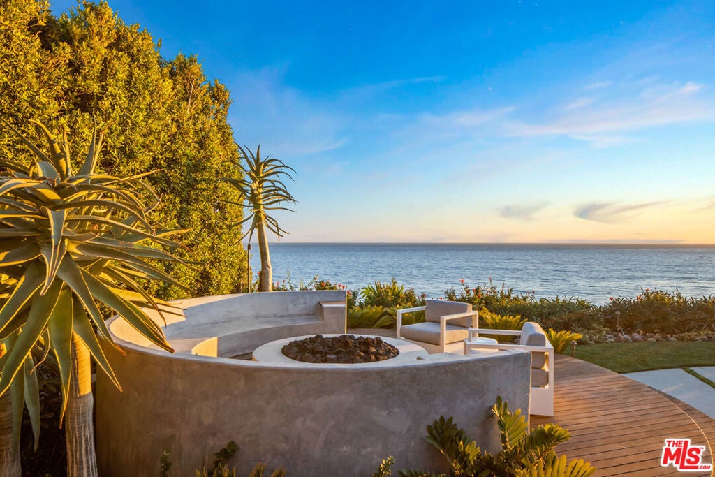 Paradise found on the Encinal bluffs. Experience breathtaking, panoramic ocean and whitewater views from Catalina to the Channel Islands at this exceptional oceanfront retreat on approximately .65 acres on Malibu's ultra desirable Encinal Bluffs. This estate is a masterclass in relaxed coastal luxury, singularly beautiful, exquisitely appointed, and designed to capture year round sunsets in their full cinematic glory. Tucked behind dual gates for maximum privacy, this hi-tech contemporary residence welcomes you with beautifully curated landscaping and soaring ocean views from nearly every room. At the heart of the home, a 36-foot motorized wall of glass seamlessly transforms the expansive living, dining, and kitchen area into a stunning oceanfront resort, featuring a pool with Baja shelf and spa, outdoor bar/kitchen, al fresco dining area, a large circular firepit lounge, all tailored for memorable moments and effortless hospitality. Each evening, the horizon becomes a living canvas of fiery golds, soft purples, and deep blues washing over the ocean in an intimate and infinite sunset show. A second, more secluded firepit rests atop the bluff, where a private path leads down to your own sandy cove, complete with Adirondack chairs and lush, flowering greenery. Inside, a light-filled open floor plan blurs the line between indoor and outdoor living. European wide-plank wood flooring and soaring ceilings create an airy, expansive atmosphere. The great room is anchored by a dramatic fireplace set in back-lit Brazilian marble, flanked by a built-in humidor and a temperature-controlled wine closet, custom crafted for seamless entertaining. The sleek chef's kitchen inspires culinary creativity with touch-open European cabinetry, Gaggenau appliances including steam and wall ovens, and a built-in coffee system. A cozy media room, showcasing a fur covered couch, can be tucked away for added privacy by a stylish, sliding barn door. A full bath and laundry room complete the main level. From the dramatic double height entry hall, floating stairs ascend to a spacious upper landing with a sitting area. Three well-appointed bedrooms await each featuring automated window shades, private deck access and an ensuite bath for effortless comfort and privacy. The ocean and pool view primary suite is a refined retreat, featuring dual closets and a spa-inspired bath with a glass-encased ocean facing rain shower, designed for indulgence. Additional features include garage, guest parking, an outdoor shower, integrated solar power, and a suite of smart home amenities including security and sound systems. With its blufftop setting and striking design, this contemporary estate takes the Malibu lifestyle to new heights.
