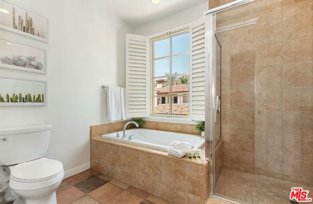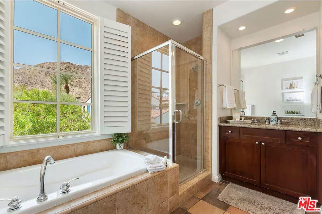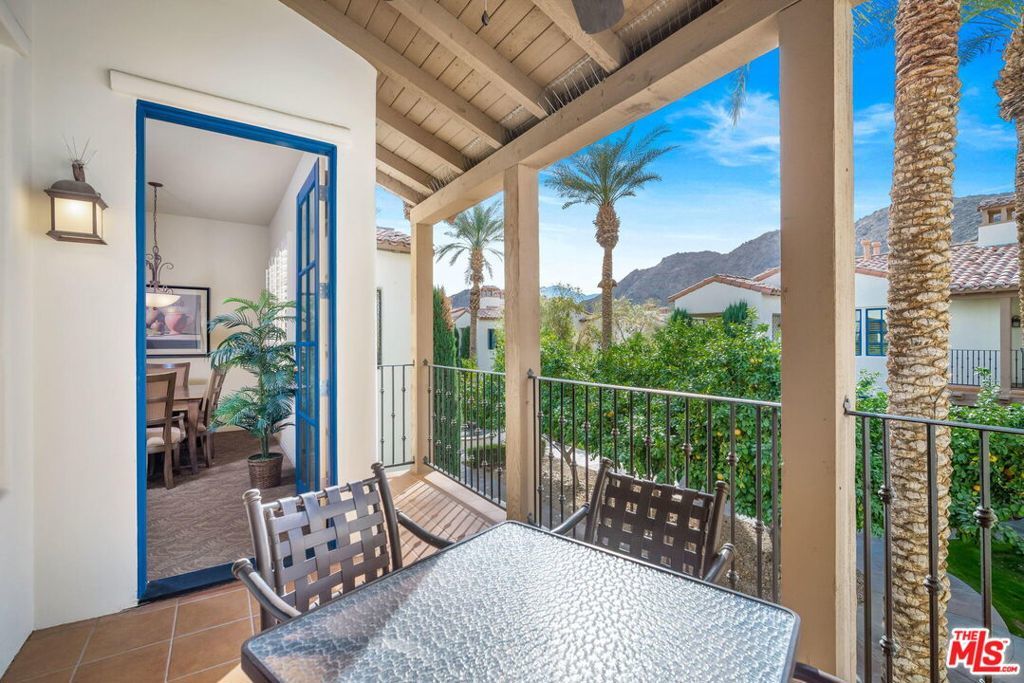 Fully furnished villa in prime location with mountain views. This residence offers 2 bedrooms (King and Queen), 2 bathrooms with soaking tubs, 2 private terraces, 2 fireplaces, a fully equipped kitchen, queen sofa bed, in-unit laundry, and garage parking. Sleeps up to 6.Community amenities include 12 salt-water pools with cabanas, beach-entry kids' pool with splash area, Jacuzzis, hammock garden, fitness center, and a 13,000 sq. ft. clubhouse. Located within the secured, guard-gated Legacy Villas community in La Quinta. Prices vary depending on availability and season. Listed price is for summer months and vary depending on on season.