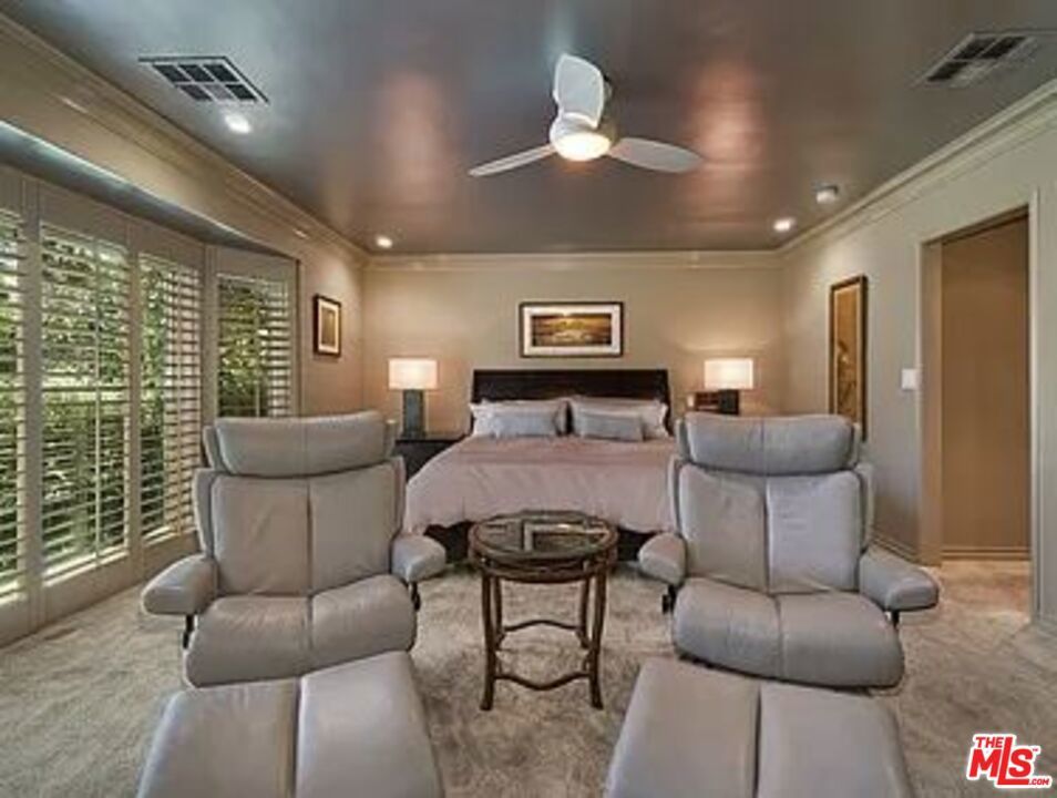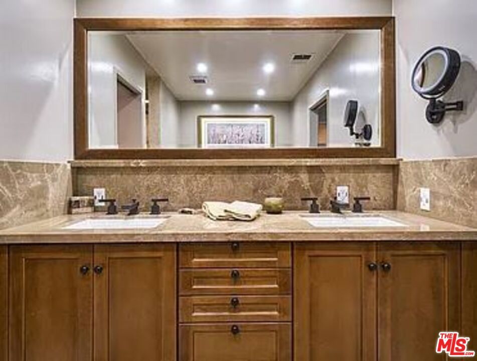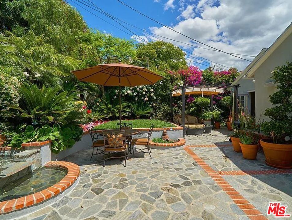 This 2BD/2BA ~2,000 sqft traditional home is located in the highly-desirable neighborhood of Beverlywood. Step through a double-door into a foyer which leads to an impressive living room with dramatic vaulted ceilings, skylights, recessed lighting, French doors, and gleaming hardwood floors. Venetian plaster lines most walls and allows light to reflect from one room to another. A spacious kitchen showcases stainless-steel appliances, custom-made cabinets, and granite counter tops. A dining area is adjacent to the kitchen, as is a laundry room. The master bedroom has a travertine fireplace, floor-to-ceiling windows, and a walk-in-closet. Master bath has dual sinks, spa tub, water closet, and an oversized step in shower. Another large bedroom (with access to a bathroom) has French doors to the backyard. The backyard area is a "secret garden"-like setting with lush, colorful vegetation and a soothing fountain.