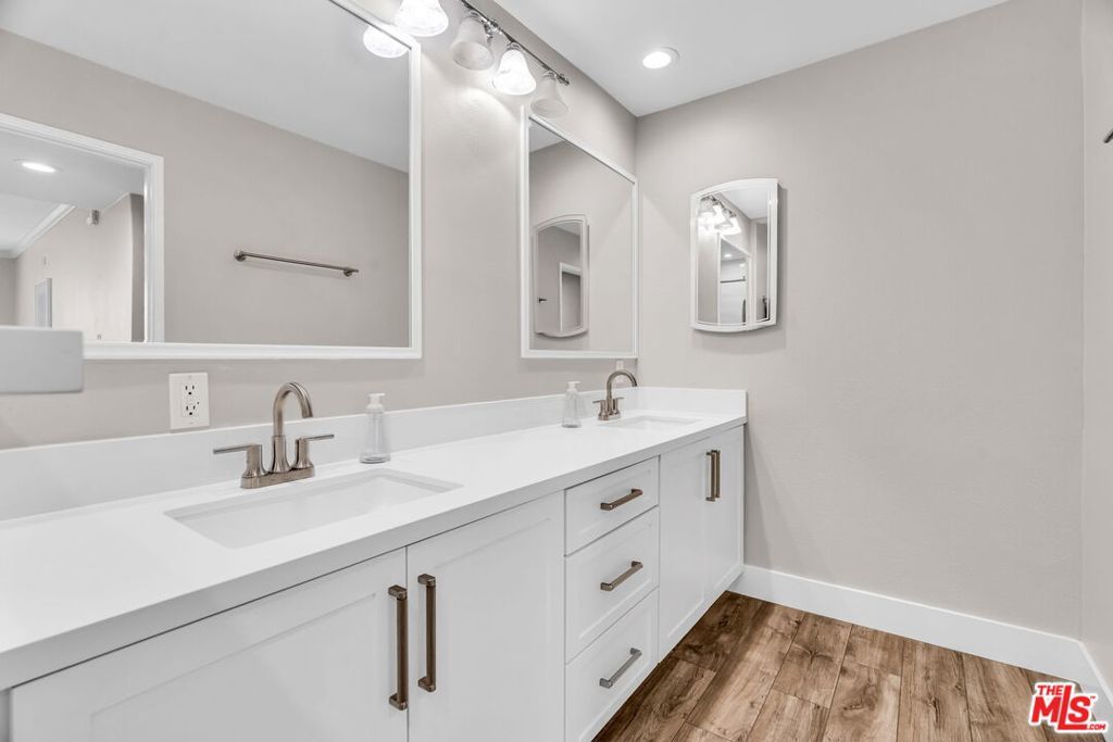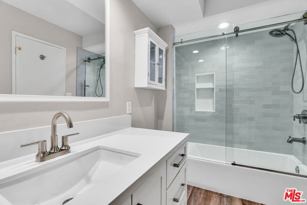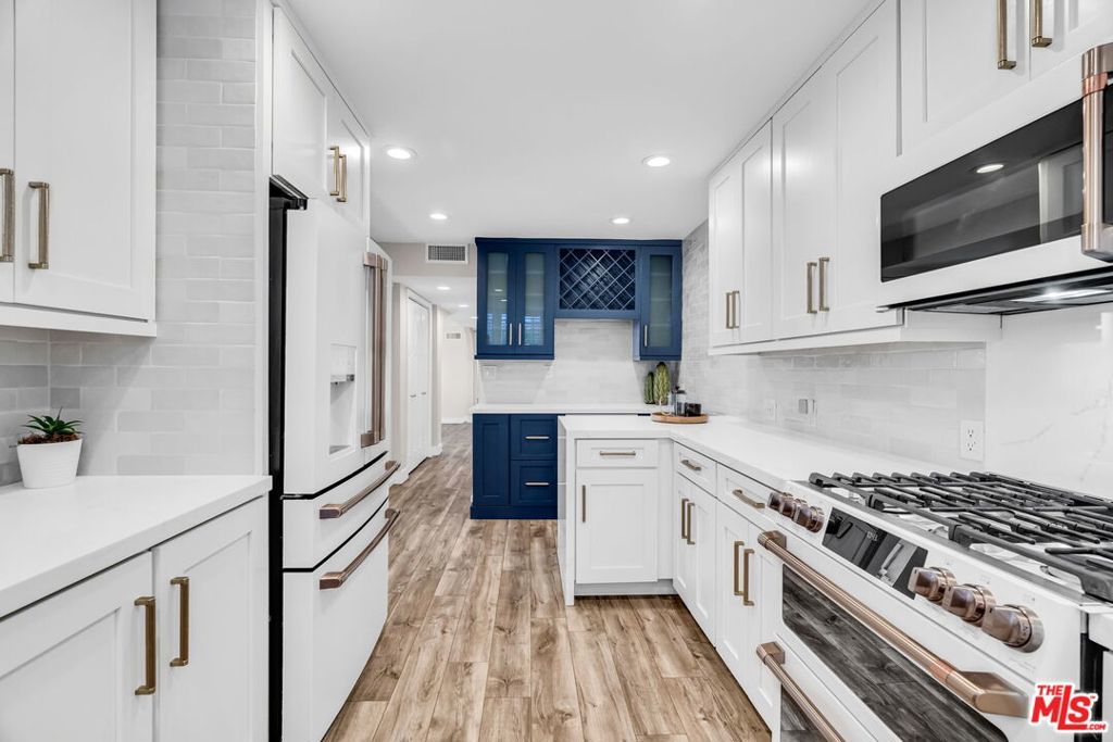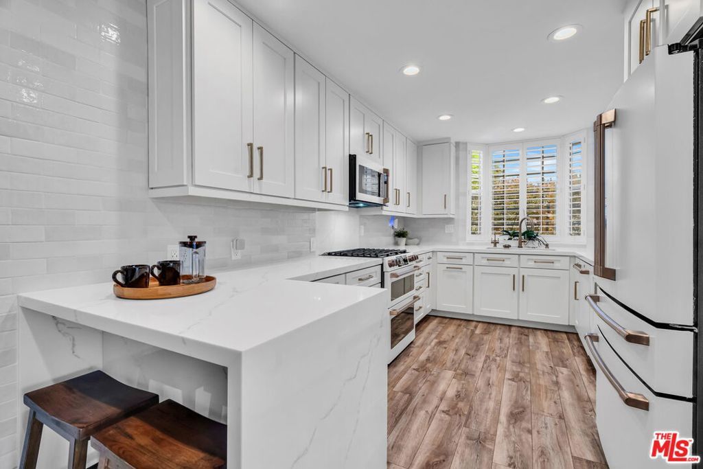 Exceptional condo overlooking beautiful tree-lined street in the heart of Sherman Oaks, South of Ventura Blvd. Recently renovated with modern finishes, this spacious single-level home blends style, function, and comfort. A welcoming entry leads into a light-filled step-down living room with recessed lighting and fireplace. The open layout flows to a dining area and a beautifully remodeled kitchen featuring quartz countertops, glazed ceramic backsplash, custom soft-close cabinetry, mixer lift system, Cafe appliances, and a workstation sink. The generously sized primary suite boasts two custom-designed walk-in closets with European-style cabinetry and soft-close doors and drawers, along with an updated ensuite bath showcasing dual vanities, custom tile shower, and Delta fixtures. The secondary bedroom offers a large closet and easy access to a stylishly upgraded full bath. An in-unit LG WashTower provides added convenience. Additional highlights include: LVP flooring throughout, central HVAC, side-by-side parking with storage in a gated garage, Tesla EV charger, and community amenities including a pool, spa, and gym. Located close to shopping, theaters, easy freeway access, dining, and so much more (Bacari, Schatzi's, Local Peasant, Mendocino Farms, and Ralphs all about a block away)! An amazing property that is ready to be your new home.