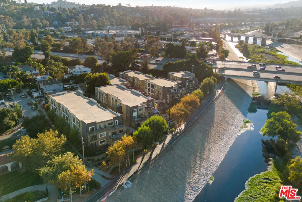 Welcome to Riverhouse in Frogtown. Built in 2016, this modern two-bedroom, two-bath corner unit blends city living with nature right outside your door. Step inside to an airy open floor plan with engineered hardwood floors, fresh Swiss Coffee walls, quartz countertops, dual-paned windows, and in-unit laundry. Your spacious balcony sits above the LA River and bike path perfect for morning coffee and people-watching. Outside, Riverhouse offers cozy shared spaces with fire pits, colorful umbrellas, and gated parking with EV chargers. But the real magic? Direct access to the bike path, kayaking, and riverside workouts with your new weighted vest. Afterward, check out neighborhood favorites like Wax Paper for a sandwich, La Colombe for your latte, or Salazar for tacos under the stars. With shops, freeways, and DTLA close by, this Frogtown unit puts you in the heart of one of LA's most vibrant and creative neighborhoods.
