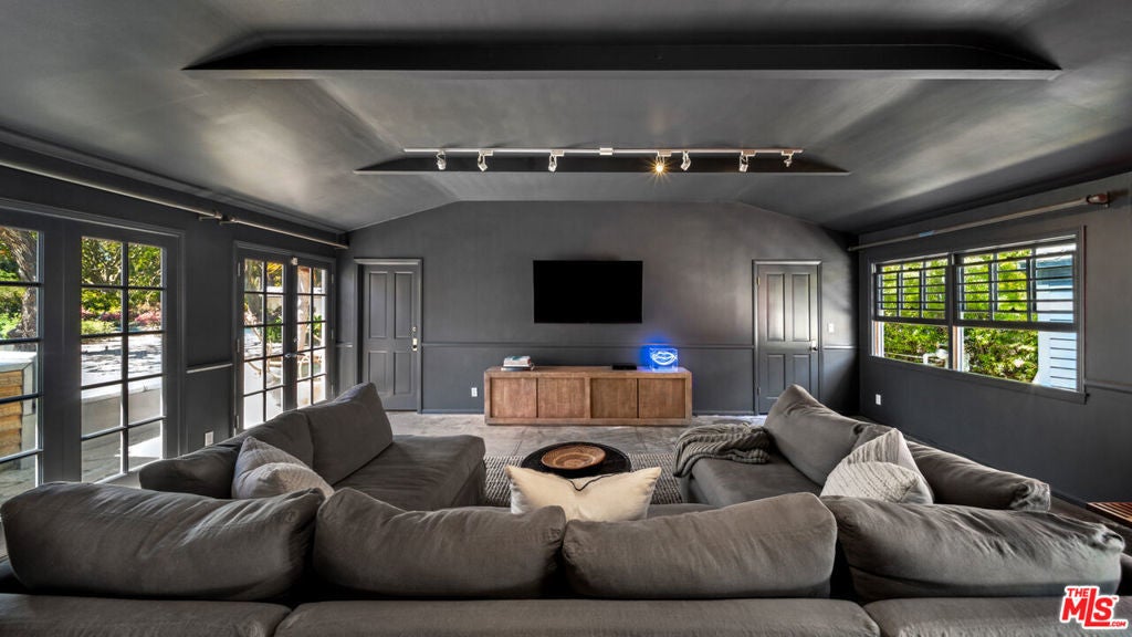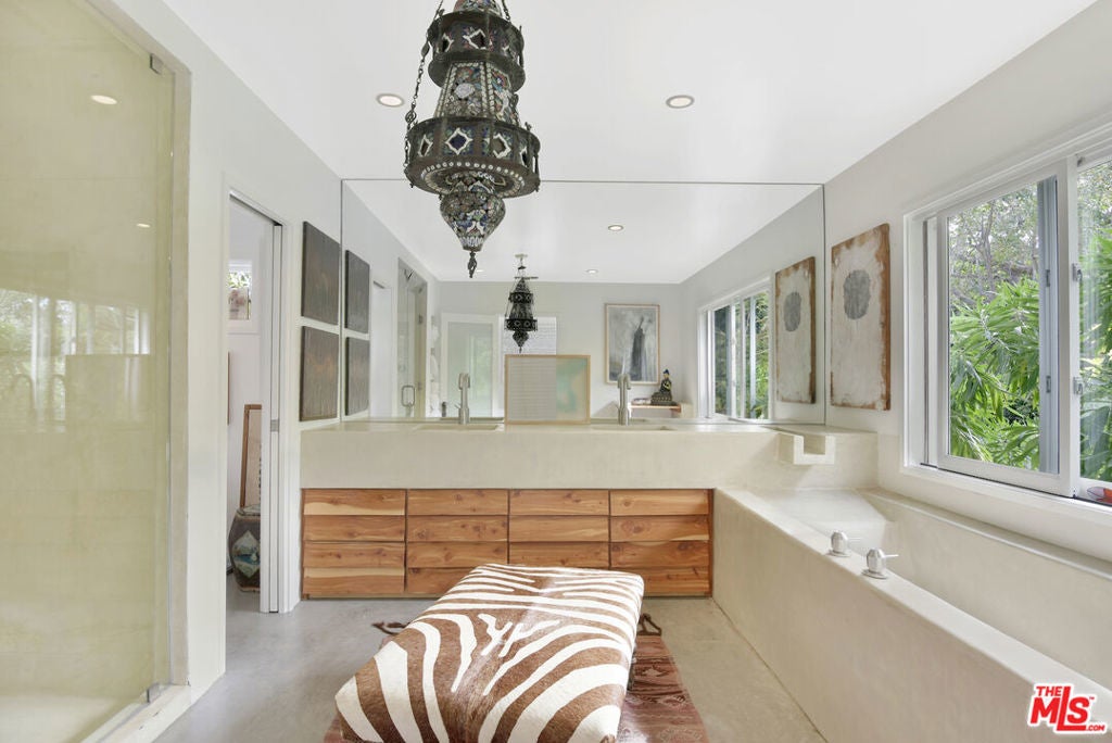 This sensational Point Dume house is set on more than an acre of gated and landscaped privacy. Complete with beach rights, it is a home created for comfortable indoor/outdoor living and sophisticated entertaining. The home is detailed with high wood-beamed ceilings, Fleetwood glass doors and cement floors. In addition to a beautiful living room, the home has a media room, family room with fireplace, a dining area, and a chef's kitchen equipped with a Viking stove and oversized Sub Zero refrigerator and freezer. Large 12-foot sliding doors open the house to the front and back yards. There are three bedrooms and four bathrooms, plus an office/bonus room, with a fireplace, that could be a fourth bedroom. The owner's suite has a fireplace, a wall of glass doors opening to the back patio, and a luxurious garden-view bath with a huge shower, tub, and double sinks. The exquisite grounds are tranquil and harmonious, with a pool and spa, dining area, fire pit, double barbecue island, multiple recreation and seating areas among beautiful trees and plantings, and a detached one bedroom guest house. The home is also equipped with modern updates such as Sonos speakers, Generac auxiliary power, NEST heating and cooling, and security entry. This exceptional property is just a short distance to Riviera 2 private beach access. Available July 1st, 2025.