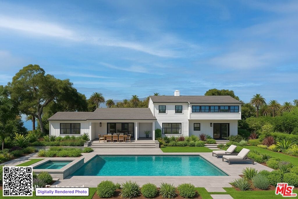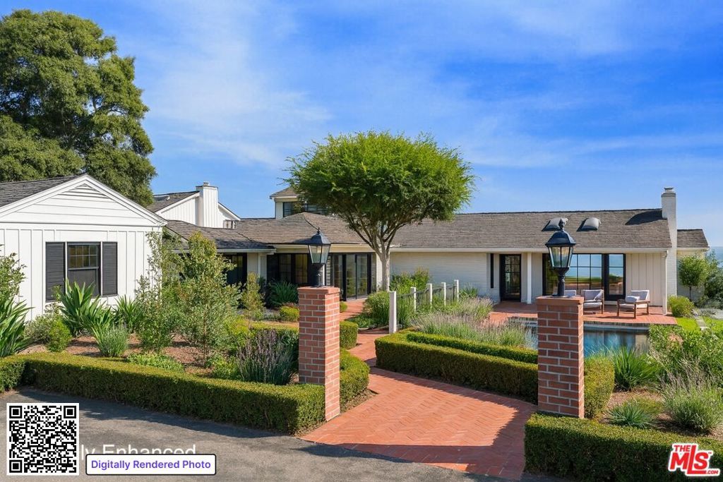 Poised above the Pacific on approximately 2.5 acres of bluff-top land, this Hope Ranch estate captures the essence of coastal California living wide-open ocean views, privacy, and a lifestyle defined by natural beauty. A gated drive winds through groves of avocado and lemon trees, leading to the residence. Behind the home, sweeping lawns stretch toward the bluff's edge, where the horizon opens to uninterrupted views of the ocean and islands beyond. Inside, vaulted beamed ceilings, a stone fireplace, and walls of glass framing the sea create a dramatic focal point, while spacious interiors are filled with natural light and designed to maximize the views from every room. The dining room opens effortlessly to the backyard, the kitchen includes a bright breakfast nook, and the upstairs primary suite enjoys a private perch with commanding vistas. A separate 1-bedroom guest quarters with its own kitchen, living room, and private entrance offers both independence and comfort for extended stays. Outdoors, the property embraces coastal living with a pool and patio, expansive lawns, fruit trees, and breezy palms that set the stage for relaxation or entertaining. From greenhouse to pathways to bluff's edge, every element is in place for a lifestyle that is immediately enjoyable yet also holds opportunities for future vision. Here, in one of Santa Barbara's most coveted enclaves, residents enjoy a beautiful beach, miles of equestrian trails, tennis courts, and close proximity to La Cumbre Country Club & Golf Course. Rarely does a property combine such an extraordinary setting with a residence that is ready to enjoy today, with the option to shape its next chapter tomorrow.