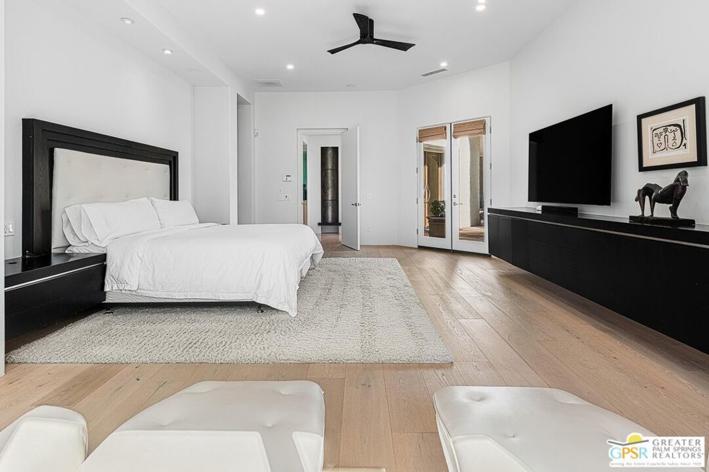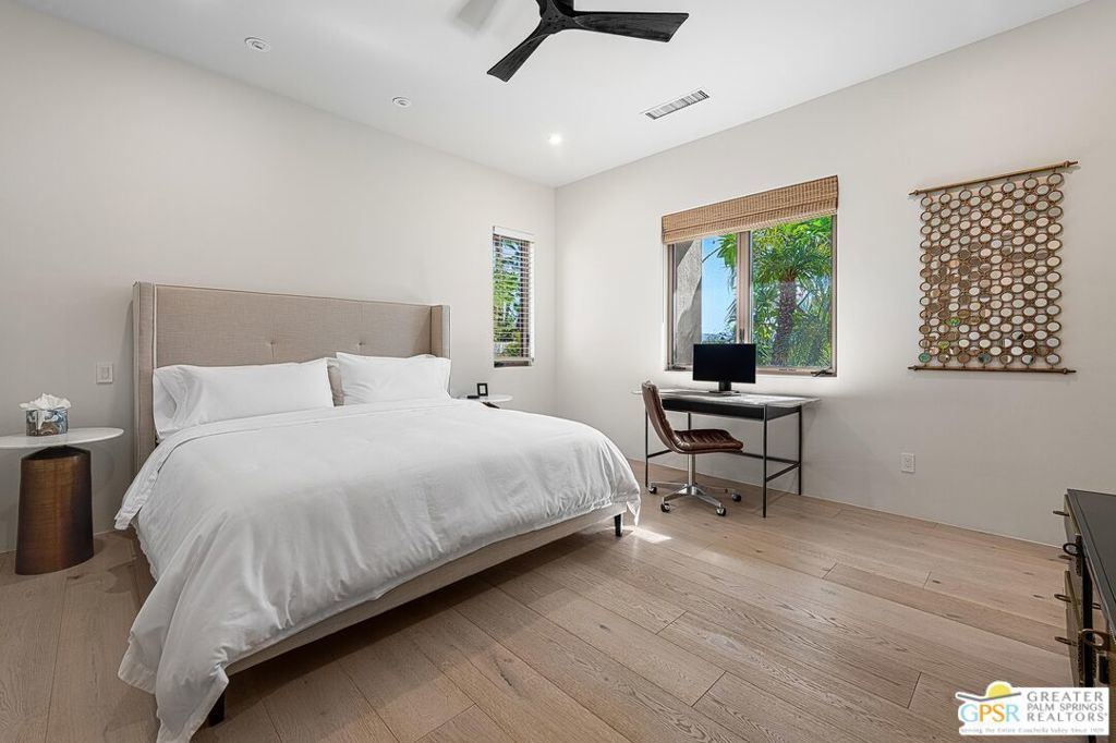 Located in the exclusive gated community of Artisan, this semi-custom contemporary home by renowned builder Ministrelli offers luxury, comfort, and style. Featuring an open-concept floor plan with 5 spacious bedrooms and 5.5 bathrooms, including a beautifully appointed attached guest house perfect for hosting visitors or extended stays. Designed to impress, this light and bright residence is filled with high-end finishes and thoughtful architectural details. The south-facing orientation ensures abundant natural light throughout the day. Enjoy energy efficiency with seller owned solar panels (approx 80 panels) and relax in a home that blends modern living with elegant design. Low HOA dues of $325 mo.. Conveniently located just a golf cart ride away from several premier country clubs, this home is perfect for those who appreciate lifestyle, luxury, and location. Furniture available outside of escrow.