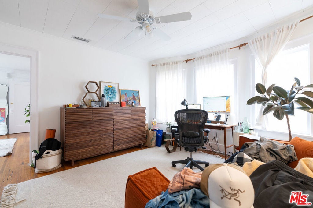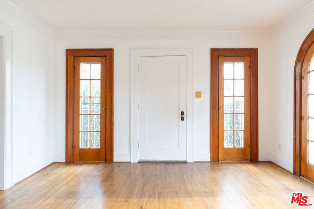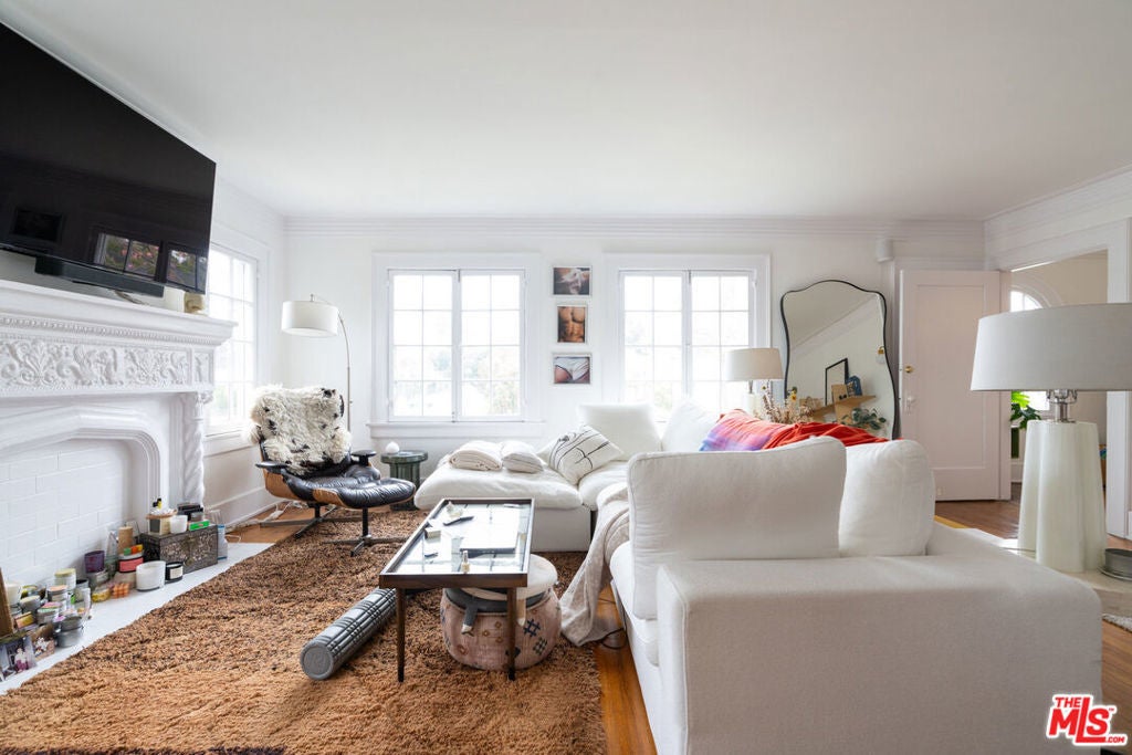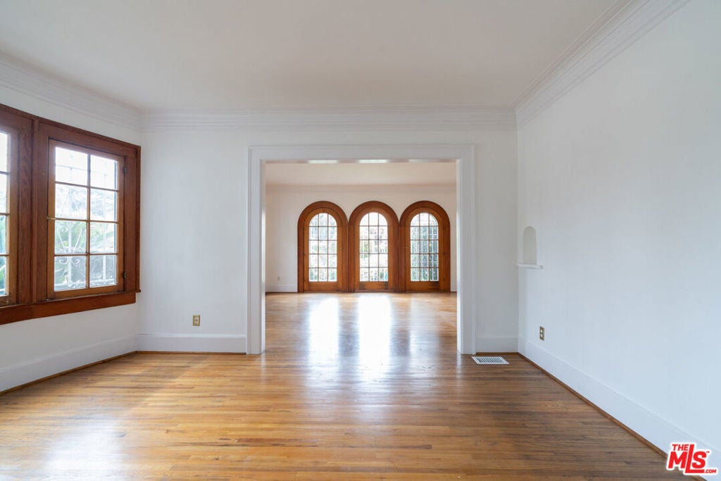 Located in the heart of one of Los Angeles' most desirable neighborhoods, this exquisite Spanish Colonial Revival duplex offers a rare opportunity to own a timeless architectural gem with exceptional income potential. Beautifully maintained and brimming with historic charm, both units feature 2 bedrooms and 1 bathroom. Each offers expansive, sun-drenched interiors, hardwood floors, and a richly detailed decorative fireplace that serves as the centerpiece of the living room. Graceful archways and vintage moldings complement the home's classic design, while elegant French casement windows frame leafy views and fill every room with radiant natural light. The formal dining room, wrapped in curved walls of paned glass, evokes a sense of old Hollywood sophisticationperfect for intimate dinners. The adjoining bright and airy kitchen exudes vintage appeal with its black-and-white checkered flooring, tile countertops, and built-in cabinetry. A cozy breakfast area and period details add character, while ample storage and counter space make it highly functional. An adjacent utility area with hookups provides space for laundry or additional appliances.Each unit boasts generous square footage, flexible layouts, and a harmonious blend of preserved period details and thoughtful updates, making this property ideal for owner-users, investors, or multi-generational living.Situated just minutes from Larchmont Village, top-rated schools, and the best of central LA, this Windsor Square duplex offers the perfect combination of location, lifestyle, and long-term value. Notable Repairs and Upgrades include: newer roof, new HVAC systems in both units, earthquake foundation bolting, copper pipe installation, sewer line repair, garbage disposal installation (lower unit), and regular pest control maintenance. A truly rare offering in a premier neighborhooddon't miss this exceptionally well-maintained investment opportunity.