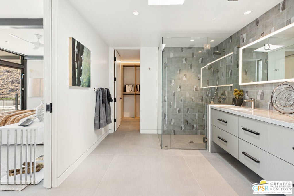 When Architecture becomes Art. Donald Wexler was asked to come out of retirement in 2010 to Design one last home and with the help of architect Lance O'Donnell, at long last became a reality. Originally Designed in 2011 this timeless home has just finished being built and will be an important piece to Palm Springs History. The home boasts 4 Bedrooms, 4.5 Bathrooms and Media Room. Technology includes Lutron/Crestron, Lutron shades throughout, Owned Solar, Battery Backup, Security Cameras, High efficiency air conditioning and appliances including an air conditioned garage. Appliances are Jenn-Air, all bathroom plumbing fixtures are Duravit including 2 bathrooms with Sensowash toilets, tankless water heaters and Lennox air conditioners. Located in the premier development of Desert Palisades. Desert Palisades is a gated community consisting of the finest new homes in Palm Springs just minutes from downtown Palm Springs.