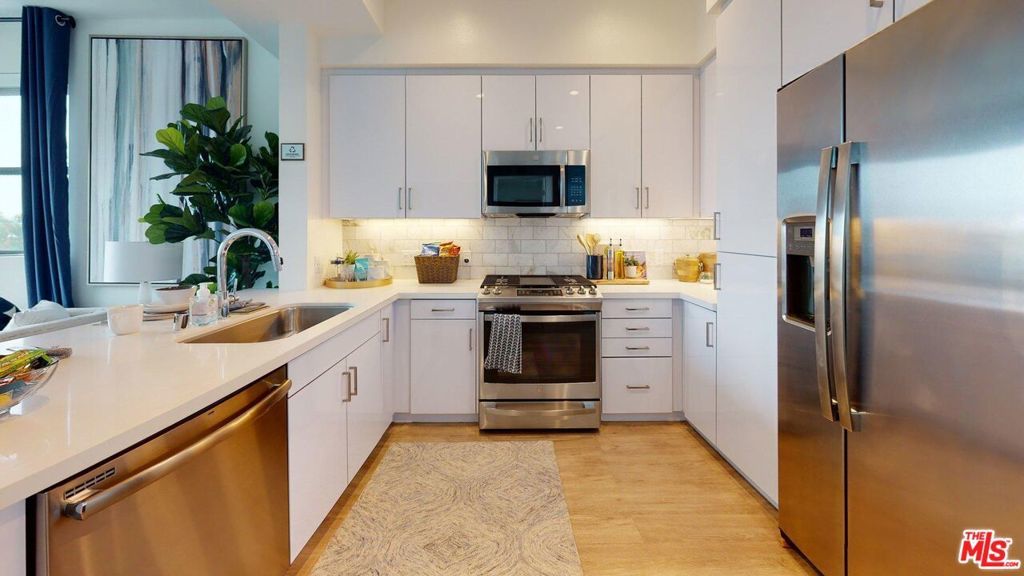 This modern studio apartment home is available immediately! Discover bold, coastal-inspired living with stunning residence featuring white quartz countertop, flat-front cabinetry, stainless steel appliances, gas range, and artful tile backsplash. Enjoy large windows with abundant natural light, modern lighting, wood-style flooring, oversized tub and in-home smart technology with full-size washer and dryer.Designed for effortless sophistication.Community amenities include a multi-level heated pool deck, aqua lounge, rooftop courtyards, outdoor kitchen with TVs, and pickleball court. Stay active in the indoor/outdoor fitness center with yoga terrace or unwind in stylish open-air lounge. Residents benefit from Tesla and EV charging stations, VIP package locker, bike storage, a community shuttle, on-site shops, and LEED Platinum design. Perfect trendy dining and shopping, this community captures true Westside luxury living. Photos may include similar model units and virtually staged renderings.