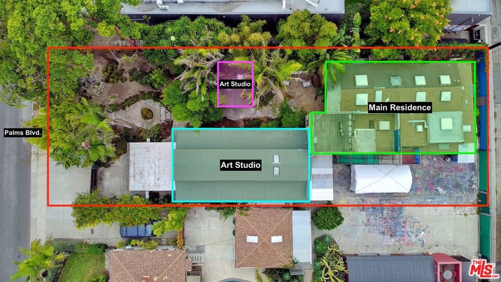 1233 Palms is a one of a kind magical artist compound and an extraordinary investment opportunity in one of Venice's most sought-after neighborhoods. This nearly 11,000-square-foot lot offers a rare chance to create a signature private estate or explore multi-phase redevelopment in a high-demand Westside market surrounded by newly built multi-million-dollar homes. The property currently consists of three structures. The main residence includes 2 bedrooms, 2.5 bathrooms, a den, and a rooftop observation deck, complemented by Japanese-inspired gardens. The second structure, designed by award-winning AIA architect Steven Ehrlich, provides a dramatic art studio/gallery space with soaring ceilings and abundant natural light. The third structure, also a studio, offers additional flexible square footage. The lot measures approximately 174 feet by 63 feet and is zoned LAR1, with alley access and no existing plans or entitlements, an ideal blank canvas for investors, developers, or end-users seeking to maximize value in a premier location. Large-scale lots of this size and zoning are increasingly scarce in Venice, making this a compelling opportunity to secure a generational asset with significant upside potential.