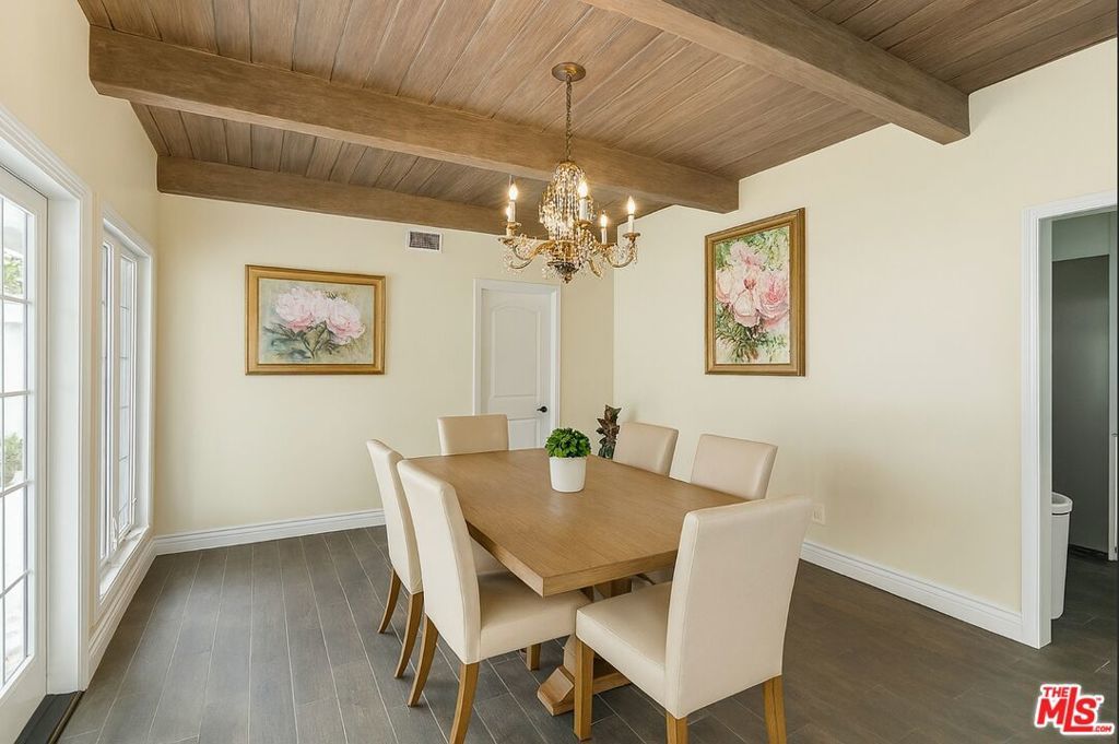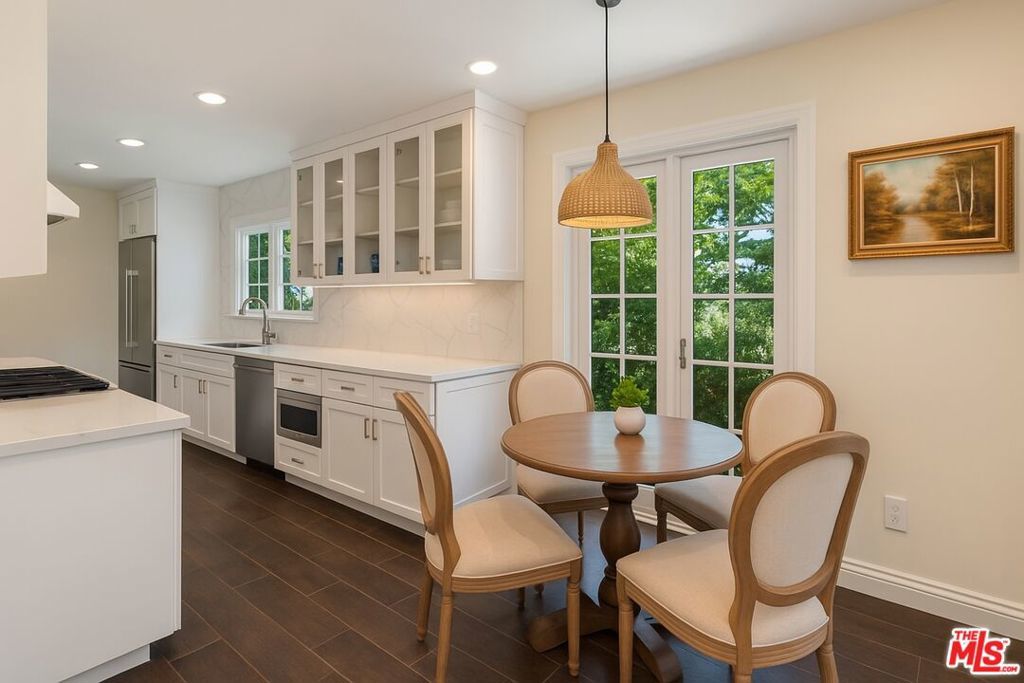 Tucked away in one of the most sought-after pockets of South Beverly Hills, 207 North Doheny is a beautifully updated two-story traditional home that perfectly balances classic charm with modern comfort. Surrounded by tall ficus hedges, the home feels like a private escape, just minutes from world-class shopping, dining, and located within the prestigious Beverly Hills Unified School District. Inside, a grand foyer welcomes you into a spacious formal living room with high, beamed ceilings, a striking fireplace, and French doors that lead out to a large, covered brick patio ideal for indoor-outdoor living. The formal dining room is warm and elegant, with wood-paneled ceilings and more French doors that fill the space with light. The remodeled kitchen blends style and function, featuring designer finishes and a cozy breakfast nook. The layout is thoughtfully designed, with a guest or maid's room on the main floor and three bedrooms upstairs. The primary suite feels like its own retreat, complete with a walk-in dressing room and a beautifully renovated bathroom. Throughout the home, wide-plank wood floors and refined details create a cohesive, welcoming feel.Outside, the backyard is a true oasis expansive and lush, with both open and covered patios, a sparkling pool, and room to relax or entertain. A detached, drive-through two-car garage adds both charm and practicality, letting you pull through without backing out. With spacious living areas, top-rated schools, and a backyard built for memories, this is a place to truly call home.