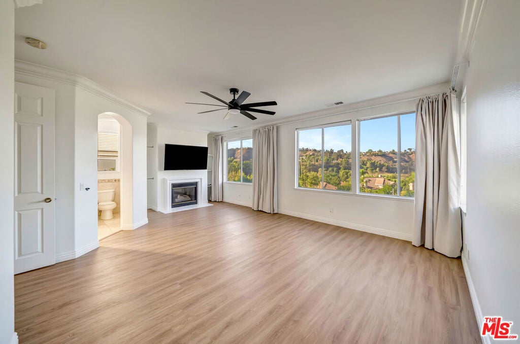 Experience refined living in this exceptional open concept residence, showcasing soaring high ceilings, abundant natural light, and sophisticated architectural details throughout. The gourmet kitchen features a generous island with bar seating, seamlessly flowing into the expansive family room and complete with a beautiful fireplace, perfect for elegant entertaining or relaxed evenings at home. The luxurious primary suite offers a private fireplace and captivating views. Step outside from the kitchen to a private patio, where you can enjoy sweeping views and tranquil outdoor living. This distinguished home is located within secure guard-gated Calabasas Park Estates, just moments from premier shopping, fine dining, and award-winning schools within the renowned Las Virgenes School District. A rare opportunity to lease a residence that blends modern sophistication with comfort and style. Schedule your tour today!