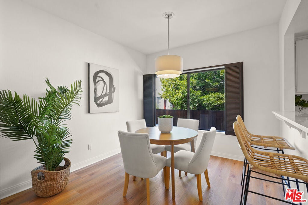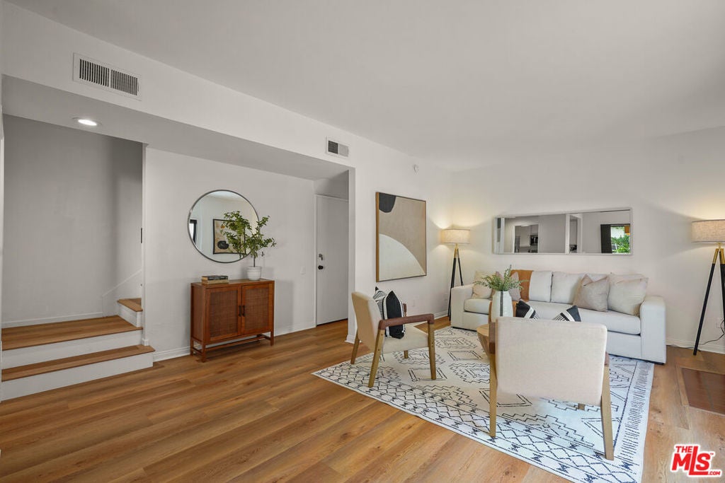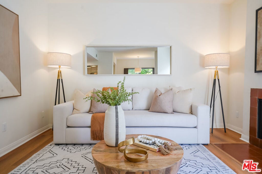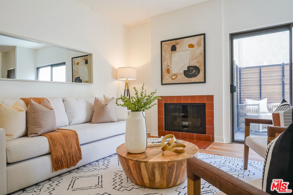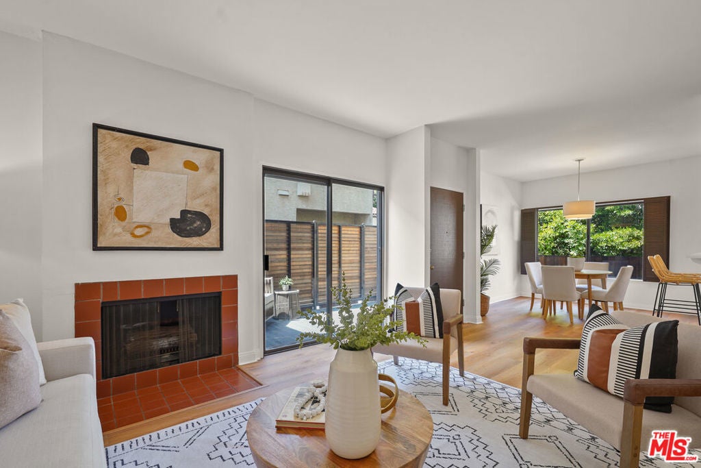 Presenting a newly updated townhouse style unit that exudes a warm and inviting atmosphere. This two-story end unit is designed in a townhouse style, offering an open floor plan with soaring ceilings in the main living areas. The living room is adorned with newly installed floors and features a cozy fireplace, perfect for relaxing evenings. This unit is filled with natural light, thanks to the sliding glass doors that lead to a delightful private patio area. Whether you prefer to surround yourself with lush plants and greenery or create a small entertainment space, the patio provides a versatile outdoor retreat. The kitchen showcases multiple new appliances and fixtures in addition to a convenient breakfast bar, and pantry closet. The first level is further enhanced by a guest powder room, featuring a new carera marble countertop and new light fixtures, reflecting the attention to detail throughout the property. Ascending to the upper level, you'll find two spacious bedrooms, each offering ensuite bathrooms. The primary suite includes an oversized walk-in closet, providing an abundance of closet space. Both bedrooms are bathed in natural light, creating a serene and comfortable ambiance. Ideally situated in a highly sought after Westside neighborhood, this townhouse is only minutes away from an array of dining options, entertainment venues, and shopping destinations. It offers convenient access to Century City, Westwood Village, UCLA, beaches and the 405 and 10 freeways. Don't miss this incredibly rare opportunity. HOA monthly fee includes Earthquake Insurance!