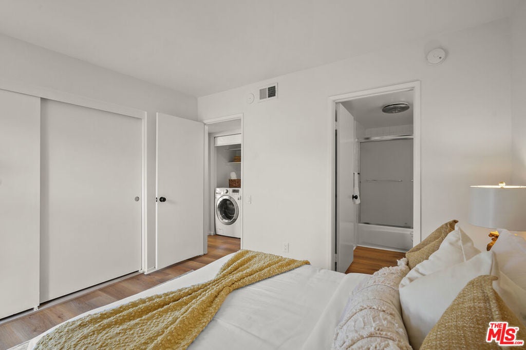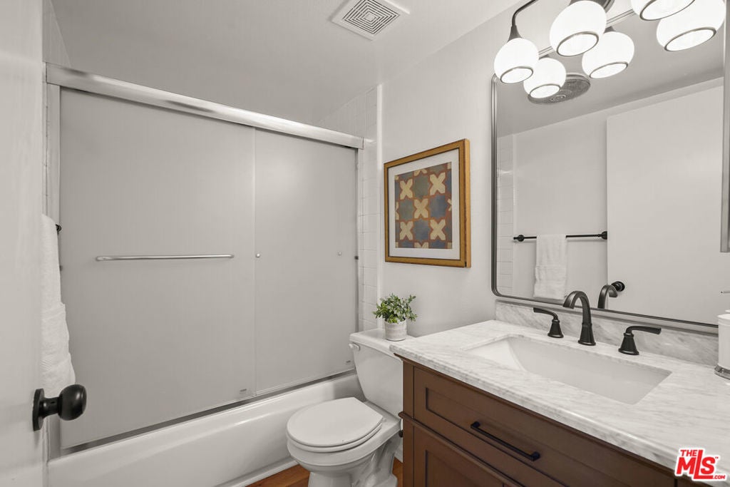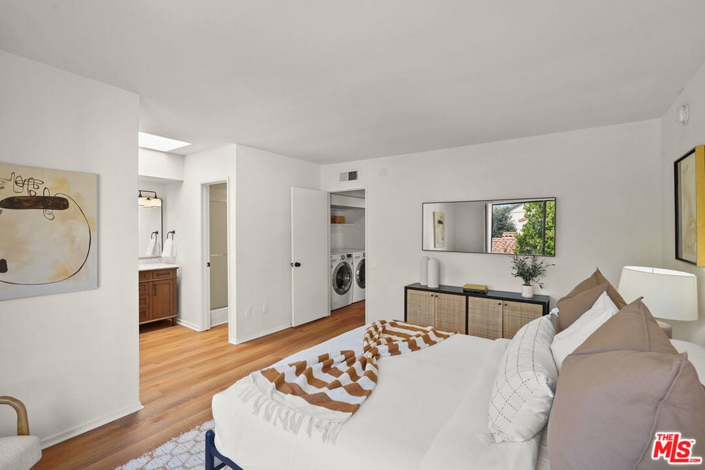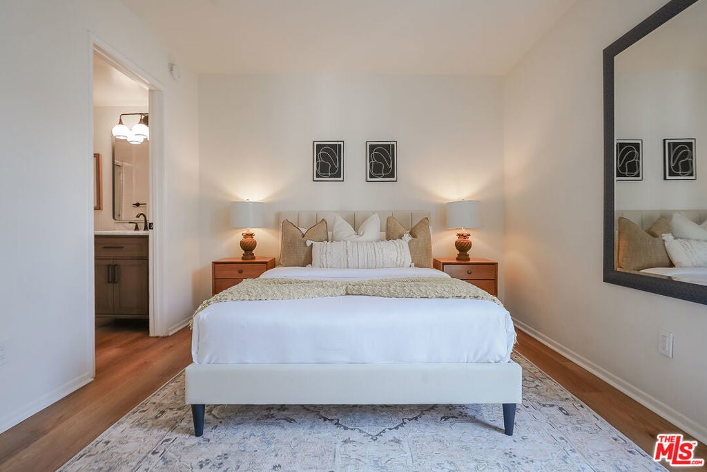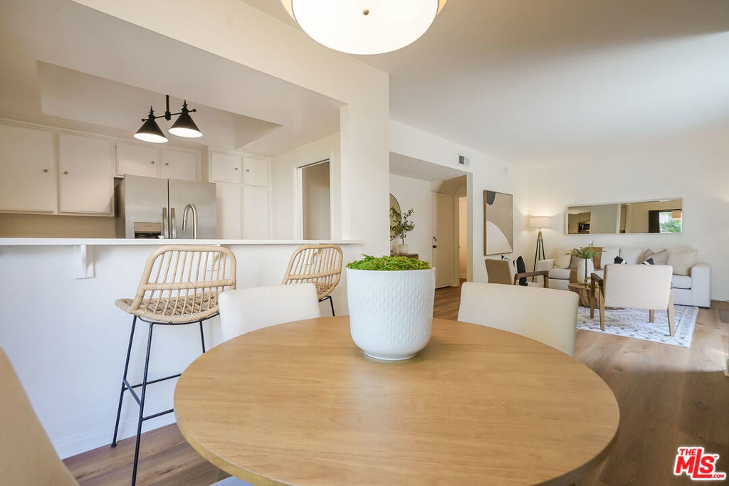 Presenting a newly updated townhouse style unit that exudes a warm and inviting atmosphere. This two-story end unit is designed in a townhouse style, offering an open floor plan with soaring ceilings in the main living areas. The living room is adorned with newly installed floors and features a cozy fireplace, perfect for relaxing evenings. This unit is filled with natural light, thanks to the sliding glass doors that lead to a delightful private patio area. Whether you prefer to surround yourself with lush plants and greenery or create a small entertainment space, the patio provides a versatile outdoor retreat. The kitchen showcases multiple new appliances and fixtures in addition to a convenient breakfast bar, and pantry closet. The first level is further enhanced by a guest powder room, featuring a new carera marble countertop and new light fixtures, reflecting the attention to detail throughout the property. Ascending to the upper level, you'll find two spacious bedrooms, each offering ensuite bathrooms. The primary suite includes an oversized walk-in closet, providing an abundance of closet space. Both bedrooms are bathed in natural light, creating a serene and comfortable ambiance. Ideally situated in a highly sought after Westside neighborhood, this townhouse is only minutes away from an array of dining options, entertainment venues, and shopping destinations. It offers convenient access to Century City, Westwood Village, UCLA, beaches and the 405 and 10 freeways. Don't miss this incredibly rare opportunity. HOA monthly fee includes Earthquake Insurance!