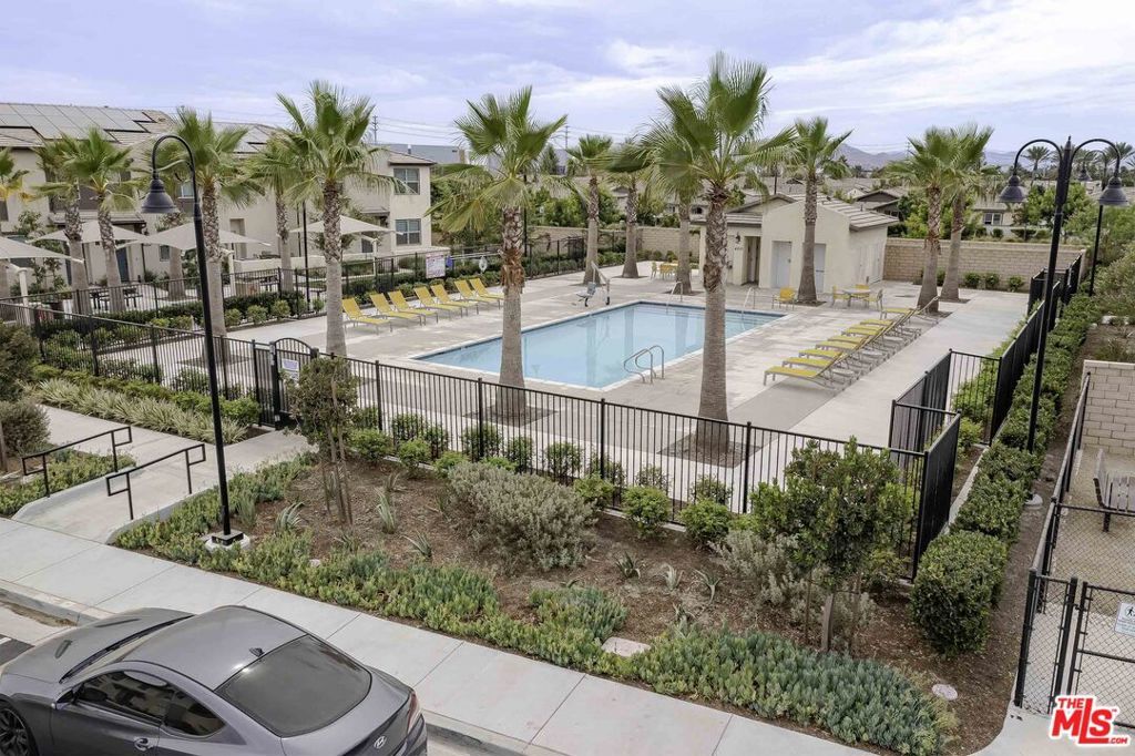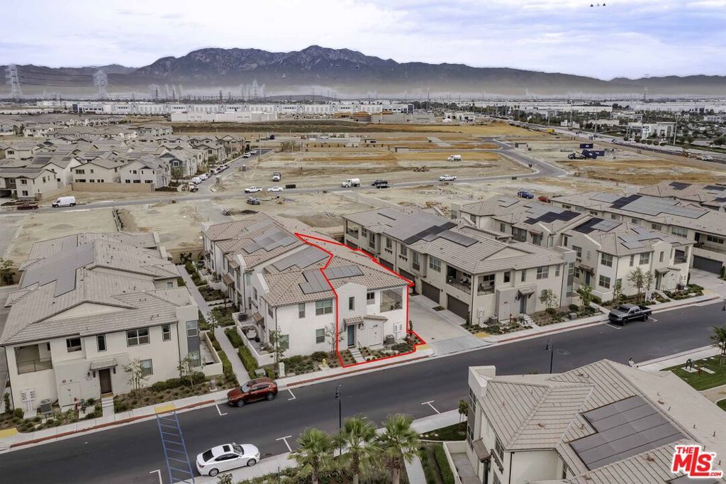 NEWER CONSTRUCTION 2-BED TOWNHOME IN ONTARIO RANCH! Move-in ready! This modern 2-bed, 2-bath townhome in thriving Ontario Ranch offers style and convenience. Its open, light-filled layout features a gourmet kitchen with living areas. The master suite boasts a walk-in closet and private en-suite bath, washer, dryer, and fridge are included for effortless living. Unwind on your oversized second-floor covered deck, ideal for dining or gardening. A 2-car garage plus bonus storage under the staircase provides ample space. Enjoy community amenities like a gated pool, BBQ areas, and a dog park. Energy-efficient leased solar panels reduce utility costs, often producing extra power. Smart home upgrades, including a Nest thermostat, Brilliant Smart Control, Ring Doorbell, and fingerprint Smart Lock, ensure convenience and security. Located near Costco, dining, and shipping, with easy access to the 15 & 60 freeways, this home is perfect for first-time buyers or investors seeking a prime location and modern comforts!