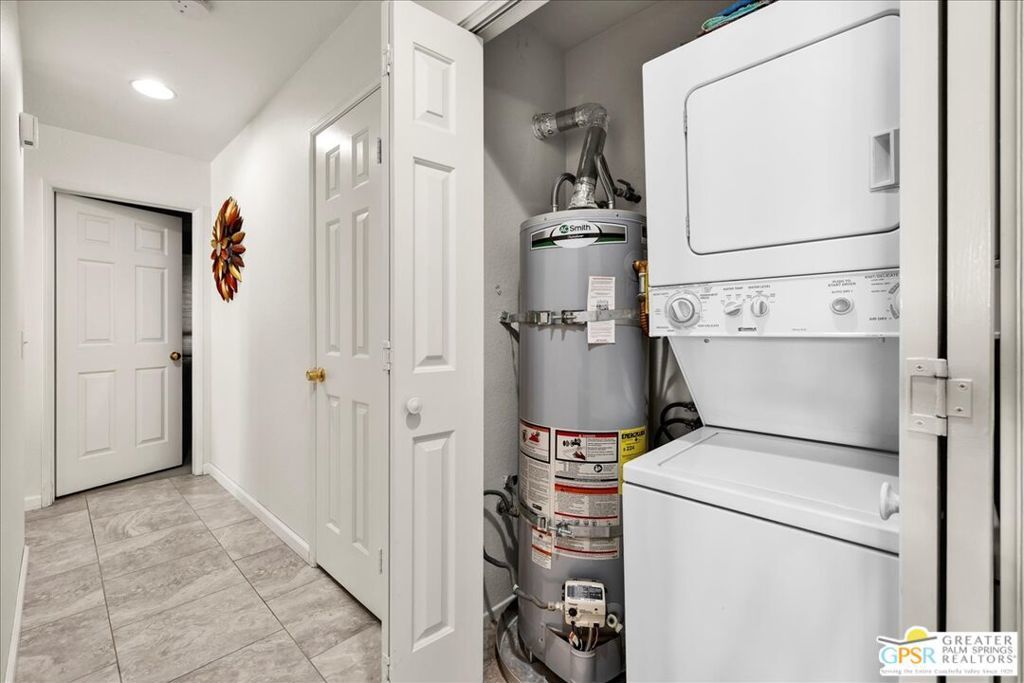 Look no further! This turnkey furnished condo is tucked into a desirable interior location within the sought-after La Palme community, offering the perfect blend of comfort, style, and resort living. Inside, you'll find two spacious primary suites large enough for a king bed, tile flooring in the main living areas, ceiling fans, and custom window treatments. The remodeled kitchen is both elegant and functional, featuring cabinetry that extends to the ceiling and a charming window over the sink with tranquil pool views. The primary bath offers dual vanity and remodeled walk-in shower. The living room and one of the bedrooms open to an expansive enclosed covered patio, fully tiled and ideal for relaxing or entertaining. Additional features include indoor laundry and assigned covered parking for convenience. La Palme residents enjoy a resort lifestyle with six sparkling pools and spas, three tennis courts, lush landscaping, and two EV charging stations. HOA dues include roof, water, trash, Wi-Fi, and basic cable with HBO making ownership truly effortless. This is also a non-smoking community. All of this is just minutes from downtown Palm Springs, the Convention Center, Palm Springs Airport, and Spa Casino, putting the best of the desert right at your doorstep. Come experience the best of Palm Springs living at La Palme!