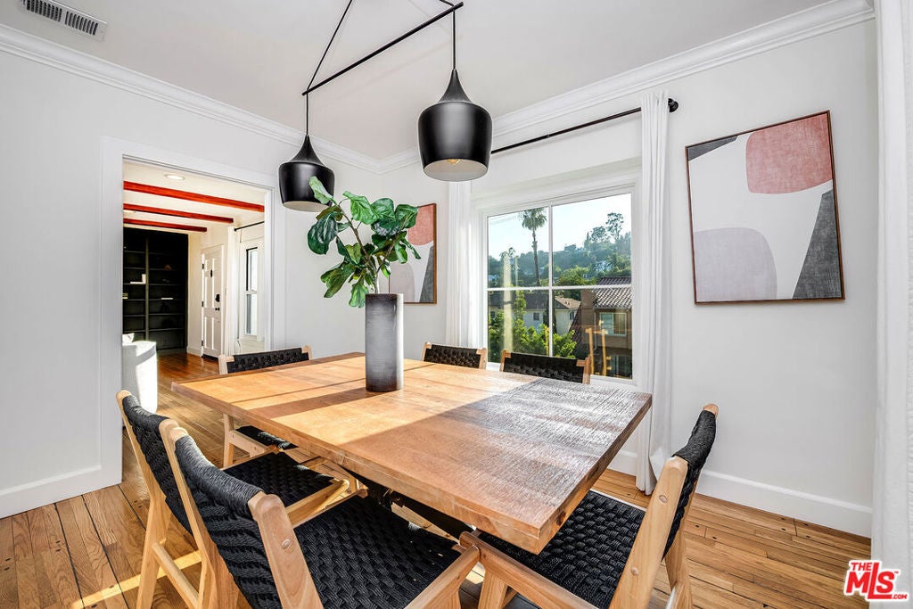 Tucked into the heart of iconic Beachwood Canyon, 2446 Cheremoya Avenue offers a refined blend of character and modern refinement. This thoughtfully updated two-bedroom home, complete with an additional office/bonus room, has been fully renovated and lovingly maintained. Inside, natural light pours through Marvin energy-efficient windows, highlighting recently refinished hardwood floors, crown molding, and classic baseboards. The inviting layout flows into a modernized kitchen outfitted with sleek cabinetry, Cafe appliances, a handcrafted Fireclay tile backsplash, and ample storage perfectly suited for both everyday living and entertaining. Every detail reflects quality and care: updated plumbing, smart home technology from Nest and Lutron, Hunter Douglas ceiling fans, and a custom California Closet system. The detached two-car garage extends the home's versatility, featuring an EV charging station, Gladiator shelving, and generous storage space. Outdoors, a beautifully landscaped, two-level backyard sets the stage for California living at its best. String lights, mature greenery, and multiple seating areas create the perfect atmosphere for private relaxation or lively gatherings under the stars. From this coveted location, you'll enjoy quick access to the Hollywood Sign, Beachwood Cafe, Bronson Caves, Los Feliz shops and restaurants, and some of Los Angeles's most beloved hiking trails. With its character, comfort, and convenience, 2446 Cheremoya Avenue is more than move-in ready -- it's a true Canyon retreat.