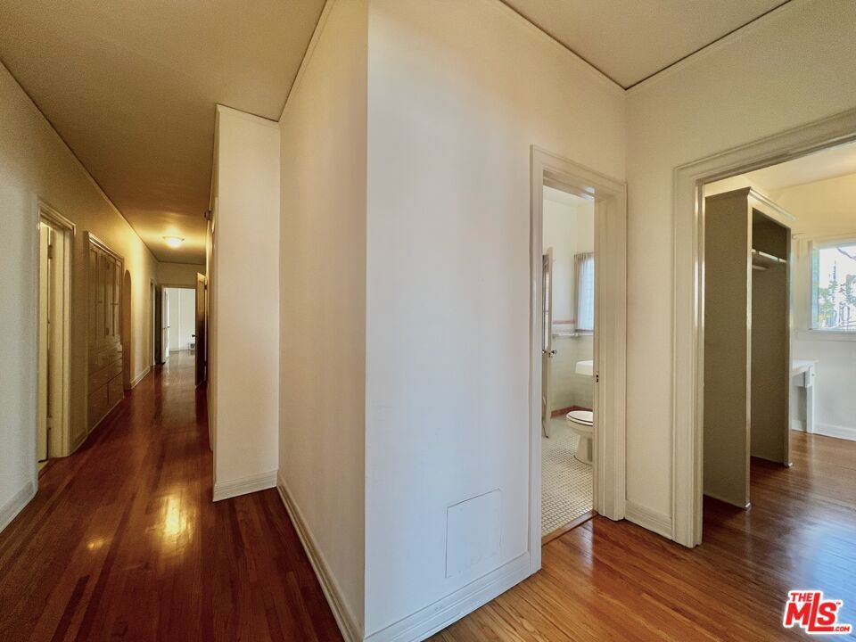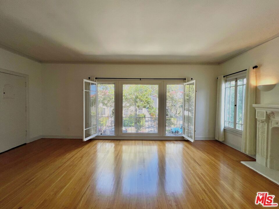 Step into timeless elegance with this upper-level 3-bedroom, 2-bath apartment, lovingly maintained by one family for over 80 years. The formal living room features floor-to-ceiling windows, crown molding, and a decorative (non-working) fireplace mantle, filling the space with light and classic charm. A separate dining room offers the perfect setting for entertaining or everyday meals, while the expansive kitchen provides plenty of space to cook and create. Enjoy the convenience of a private in-unit laundry room with direct access to the back service staircase. Both bathrooms feature original vintage tile, adding to the home's historic appeal. Hardwood floors and abundant natural light highlight the beautiful architectural details throughout. Additional features include a one-car garage with an automatic door opener. Ideally located within close proximity to houses of worship, cafes, bars, and restaurants along Beverly Blvd and Fairfax Ave. This residence perfectly blends old-world charm with modern convenience in one of Los Angeles's most desirable neighborhoods. Don't miss out - schedule your private showing today!