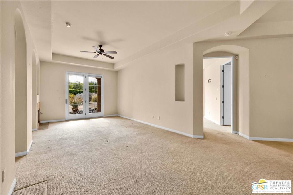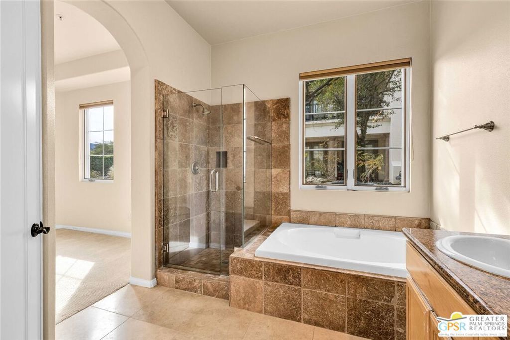 Welcome to Villa Portofino! Premier 55+ Living in Palm Desert! Step into luxury and ease with this beautifully designed 2-bedroom, 2-bathroom + den/office condominium, offering 1,559 sq. ft. of comfortable, single-level living - no stairs, no hassle! Perfectly situated on the first floor, this sought-after floor plan ensures effortless access, making it ideal for those with mobility concerns. From the moment you enter, you'll be greeted by an inviting open layout, high coffered ceilings, and abundant natural light streaming through charming glass-paneled windows. The spacious kitchen is a chef's delight, featuring maple cabinetry, slab granite countertops, and stainless steel and black appliances, a perfect blend of function and style. The primary suite is a true retreat with a sitting area, a large walk-in closet, and an en-suite bath boasting dual vanities, a separate soaking tub, and a walk-in travertine shower. The guest bedroom, located on the opposite side for privacy, also features a walk-in closet and a beautifully appointed bath. A versatile den/office with wet bar offers flexibility, ideal for a home workspace, hobby room, or additional guest accommodations. The private patio, framed by lush desert landscaping, provides a peaceful outdoor space for morning coffee or evening relaxation. Experience Resort-Style Living! Villa Portofino isn't just a place to live, it's a place to thrive! The community is designed for active adults who want the perfect balance of relaxation, social connection, and recreation. The 30,000 sq. ft. clubhouse is the heart of Villa Portofino, offering a state-of-the-art fitness center, yoga studio, resort-style pool & spa with poolside service, a game room, billiards, a cantina, a 100-seat private movie theater, and a vibrant social calendar filled with special events and activities. Whether you're looking to stay fit, make new friends, or just unwind, there's something for everyone. Looking to get involved? Join one of Villa Portofino's exclusive member clubs, where you can connect with like-minded neighbors through activities like Texas Hold 'Em, Bridge, Mahjong, Bunco, Canasta, Rummikub, knitting, book club, and more! Dine & Unwind at The Bistro! No need to go far for a delicious meal! The Bistro at Villa Portofino serves up chef-inspired seasonal favorites, from fresh salads to hearty sandwiches and signature entrees, all perfectly paired with refreshing cocktails or your favorite bottle of wine. Enjoy daily Happy Hour, a Saturday Bloody Mary Bar & Brunch, Pasta Nights, specialty holiday meals, and rotating chef specials, all just steps from your front door. Members receive a weekly newsletter with the latest dining events, ensuring you'll never miss out on a great meal or social gathering. Worry-Free, Low-Maintenance Living! Your HOA dues include: Cable TV & high-speed internet, Water & trash service, Exterior building & roof maintenance, "walls out" fire and earthquake Insurance, Window washing & landscaping, Full clubhouse access & amenities! Prime Palm Desert Location! Villa Portofino is minutes from top-rated dining, shopping, golf, entertainment, and the Eisenhower Medical Center, offering both convenience and peace of mind. This is more than a home, it's a lifestyle. Don't miss this rare opportunity! Schedule your private showing today and experience the best of Villa Portofino living!
