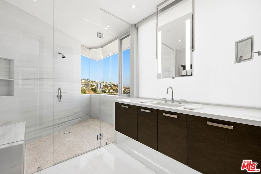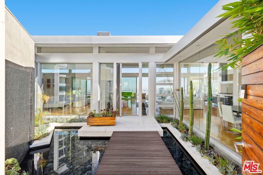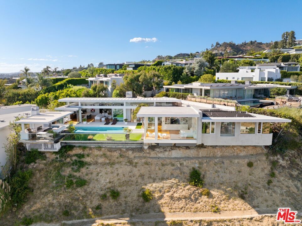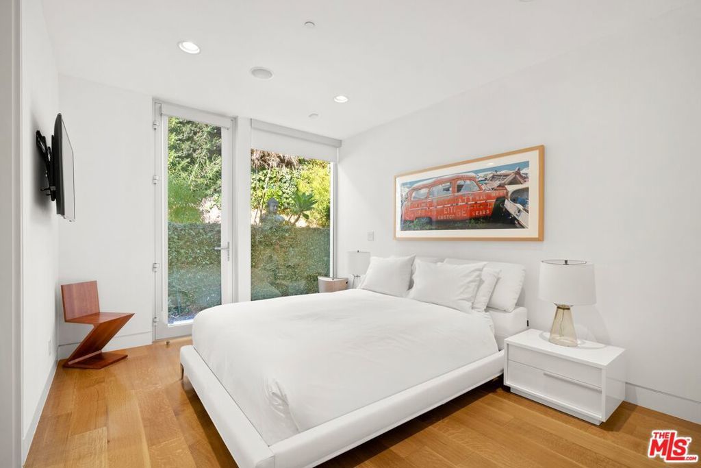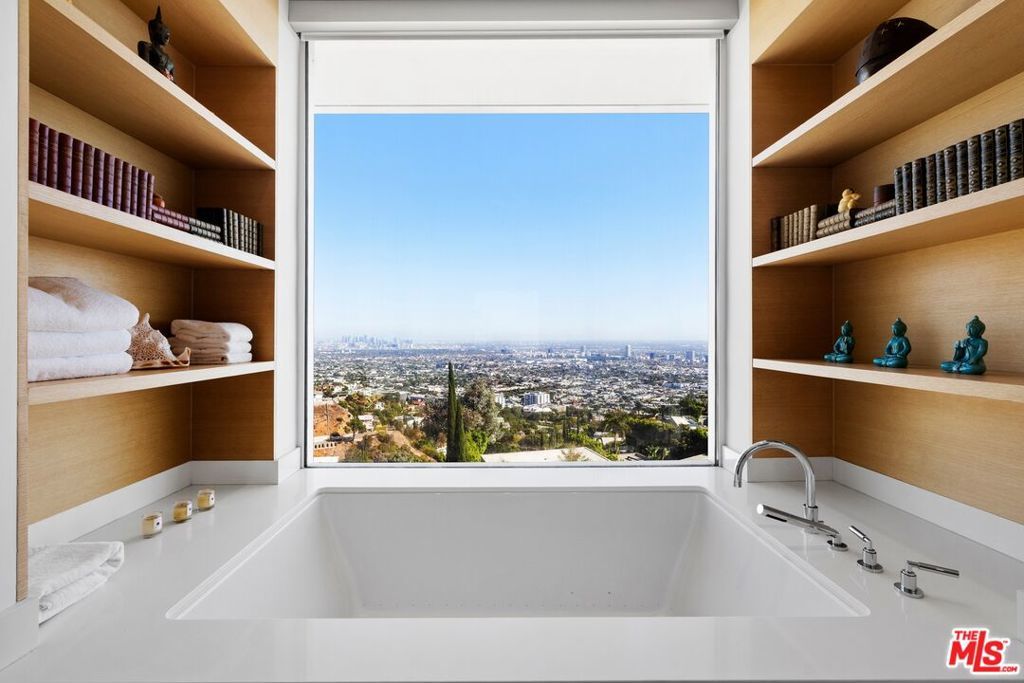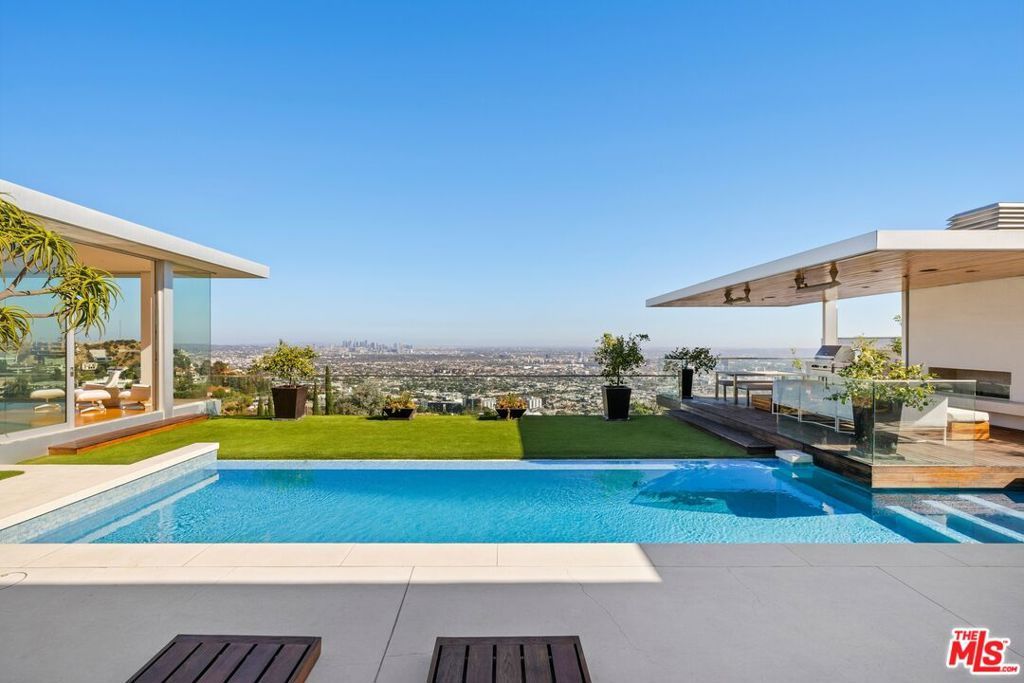 This sleek Paul McClean-designed contemporary home is located on the coveted eastern side of Blue Jay Way, offering one of the most desirable perspectives in prime Hollywood Hills' Bird Streets. The home's open-concept design features soaring ceilings and disappearing Fleetwood doors that create a seamless flow for indoor-outdoor living. The open-concept gourmet kitchen is equipped with top-of-the-line Miele appliances, a large island, and bar top seating. Fall asleep to city lights and wake to the sunrise in the glass-wrapped primary suite, featuring dual bathrooms and closets. Outside, you'll find a newly refinished pool with chaise lounges and an outdoor cabana, complete with a built-in BBQ, fireplace, and heaters. Available fully furnished for month-to-month or long-term leasing. Additional photography is available upon request.