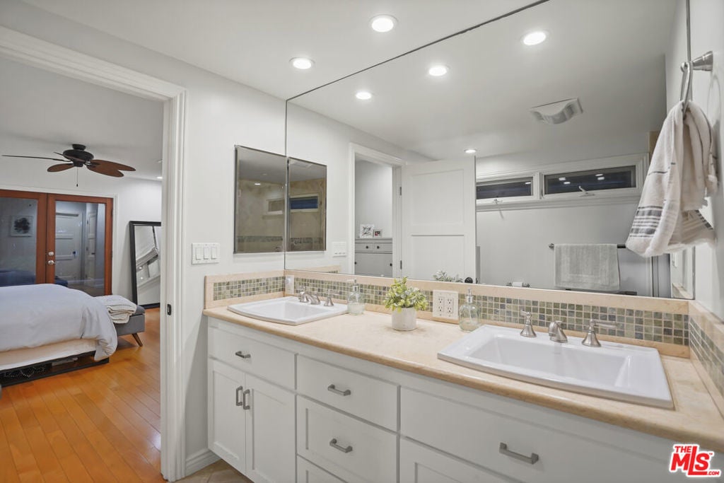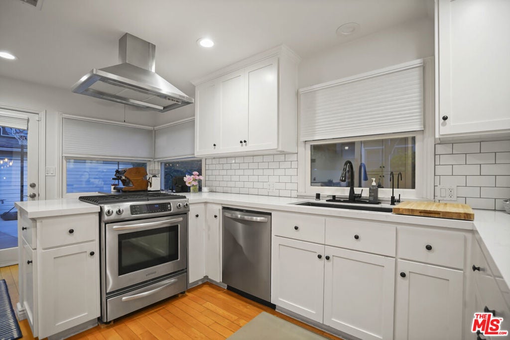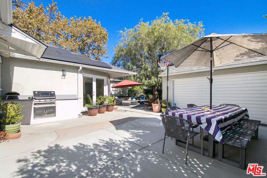 Beautiful 3 bedroom single story home located on a serene, tree-lined street in prime Sherman Oaks! Situated in one of the best areas for schools and family life, this picturesque residence is a perfect blend of classic character and modern upgrades, offering a true oasis of serenity and privacy. Step inside to find hardwood floors, a separate living room & spacious family room (featuring a charming double-sided fireplace), along with a large primary suite with a walk-in closet. The kitchen boasts quartz countertops, ample storage, an additional breakfast nook, and stainless steel appliances. The formal dining room is another perfectly separated space, great for special occasions. French doors let in tons of natural light and lead to a lushly landscaped backyard, ideal for summer BBQs and outdoor gatherings. The detached garage has been transformed into a private living space, making it perfect for an office, exercise room, or artist retreat. The home has also been equipped with Solar panels (paid off, not leased) and TWO Tesla power walls! Main house (2130sqft). Plus converted garage (370 sqft). Don't miss the opportunity to own this fantastic Sherman Oaks home!