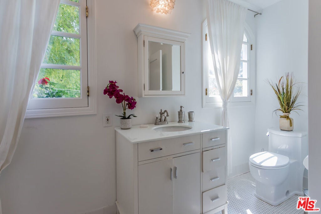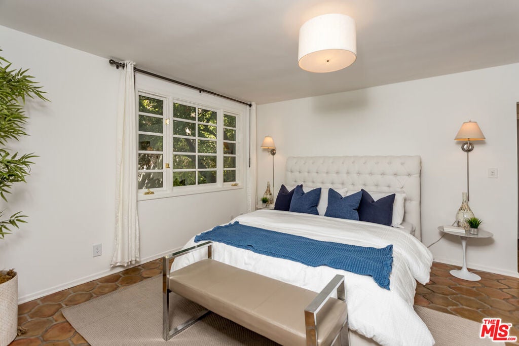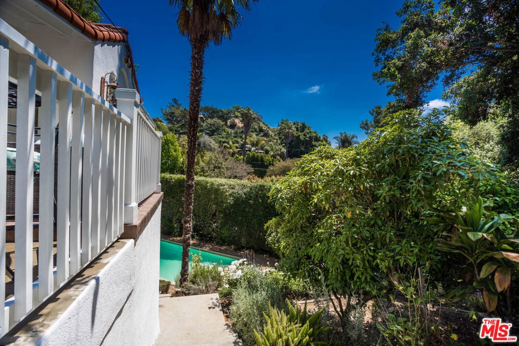 Tucked behind tall hedges on a quiet, elevated cul-de-sac, this 1925 Spanish Colonial Revival blends timeless character with modern comfort on an exceptionally private, expansive lot. Sunlight pours through graceful, floor-to-ceiling arched windows, illuminating a living room anchored by a classic period fireplace and opening to a charming front courtyard, an ideal spot for morning coffee or golden-hour gatherings. The layout features 5 bedrooms and 3 baths, plus a flex bonus room perfect for an office or creative studio. The main-level primary suite offers a walk-in closet and a sleek, updated bath with an oversized shower and dual-sink vanity. Everyday living is effortless with a dedicated laundry room and plentiful storage, including two cellar spaces. Out back, resort vibes take over: a saltwater pool sits amid lush landscaping with hillside outlooksmade for entertaining or a quiet retreat. The property's siting and mature greenery deliver exceptional privacy rarely found in the Hills. Adding to its rarity, this home includes an additional adjoining lot, creating an enormous estate with endless possibilities; expand, build a guest house, or craft your dream outdoor sanctuary. All of this in the sought-after Hollywood Hills pocket, moments to hiking trails, canyon roads, and city conveniences. Images are from when the home was previously listed and do not depict its current condition.
