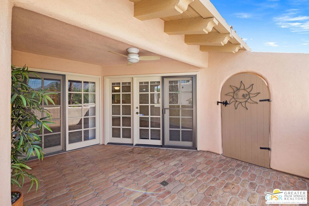 Looking for the perfect desert escape and an investment opportunity? Welcome to Palm Springs Deauville, just blocks from the buzz of Palm Canyon Drive. Designed by celebrated desert architect Hugh Kaptur, this upper-level condo features vaulted ceilings, clerestory windows, an open-concept layout, and abundant natural light. Both the main living area and the ensuite bedroom open to a private patio with pleasant views and a quiet location away from road noise. This one-bedroom, two-bath home is ideal for part-time residents or vacation rental investors, with gated security, a dedicated storage closet, and an additional large underground storage unit. Resort-style amenities include three sparkling pools and spas, tennis courts, a fitness center, clubhouse, and underground parking for up to three cars with extra storage and bike space, plus the convenience of an in-unit washer and dryer. Palm Springs Deauville allows 14-day minimum rentals, and the future high-end Dream Hotel and Condos across the street promises even greater long-term value. Whether you're looking to invest, escape, or both, this Palm Springs home is a delight on all fronts.