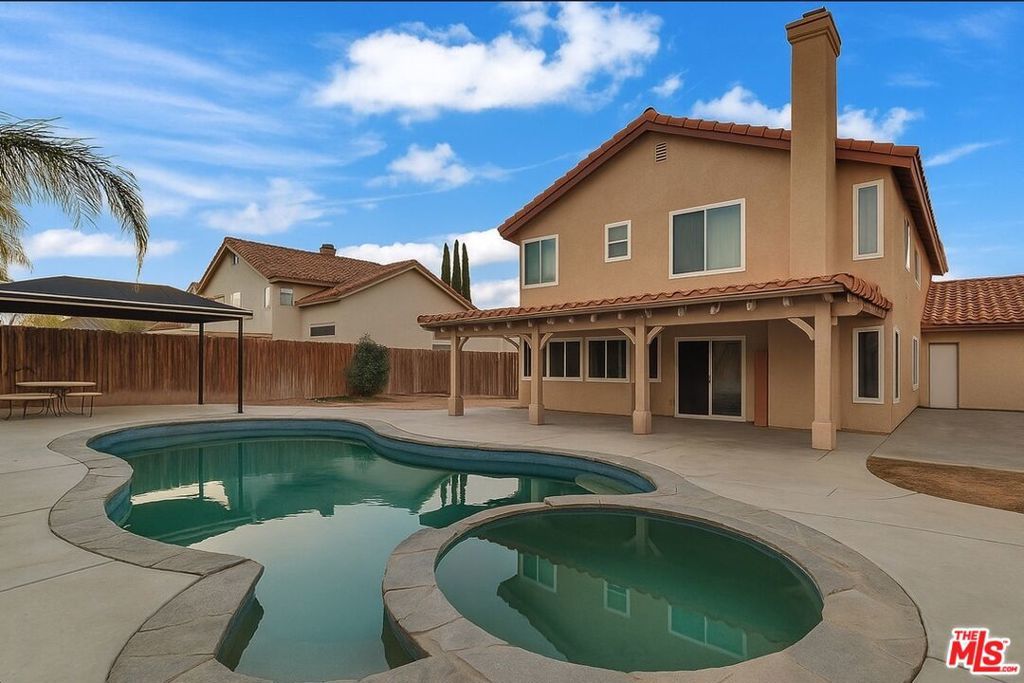 Back on the Market... Your Opportunity is Here!!! More gorgeous home in the heart of Palmdale! Perfect for a growing family, this property offers a modern layout designed for both comfort and style. As you enter, the cozy living room welcomes you with direct access to the dining area, creating a seamless flow for gatherings. The kitchen boasts spacious countertops, beautiful cabinetry, and an open design that connects to a large family room perfect for entertaining or relaxing. From here, step outside to enjoy the sparkling swimming pool with a jacuzzi waterfall, ideal for sunny California days. A standout feature: ceramic flooring has been newly installed throughout the entire home, giving every room a fresh, sleek, and airy look. Upstairs, the master suite feels truly regal, offering a spacious retreat complete with a separate bathroom featuring a soaking tub, standing shower, and private toilet area. Each bedroom is generously sized, filled with natural light, and upstairs also includes a versatile family area for added living space. This home is move-in ready, full of upgrades, and a must-see! Some images have been digitally enhanced with artificial intelligence to show the potential of the spaces. Not all enhancements reflect the property's current condition. The property is equipped with solar panels, buyer to assume the solar system along with the lease payments of $200.98/month.