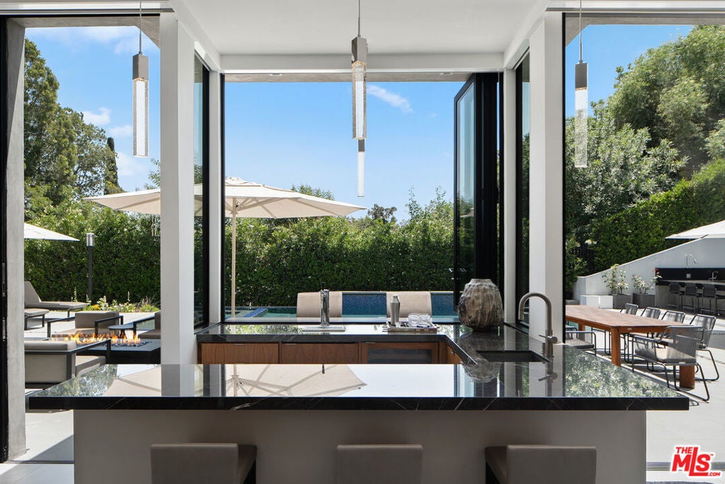 Price reduced to sell. One of the best priced per square foot view properties on the market. Located just minutes from the world famous Sunset Strip with all the shops, dining, and entertainment at your fingertips. This home boasts an abundance of natural light, and an open floor plan that seamlessly transitions from indoor to outdoor living through floor to ceiling pocket doors. The wide open kitchen includes professional grade appliances, a dumbwaiter, and a back prep kitchen with commercial grade stove/oven. Downstairs you will find an entertainers dream that includes a theater, gym, sauna, guest room, wine cellar, and wet bar. Additional features include a luxurious primary suite with gorgeous views and resort-like amenities, an office, and three additional spacious bedrooms. The expansive backyard oasis comes complete with indoor/outdoor bar, sparkling pool with Baja-shelf and spa, fire pit, outdoor kitchen/BBQ, and ample space for dining and relaxation. Soak up the sun or enjoy breathtaking views from the large rooftop deck with fire pit and the expansive balconies from most bedrooms. This property is not to be missed. This home has it all. Available immediately.