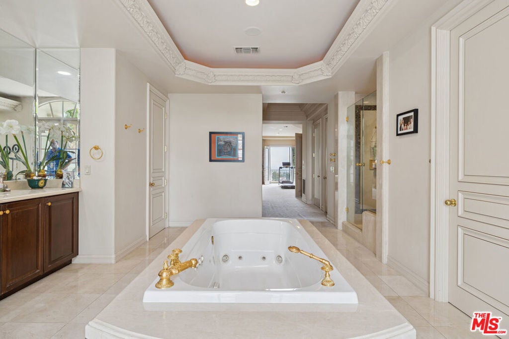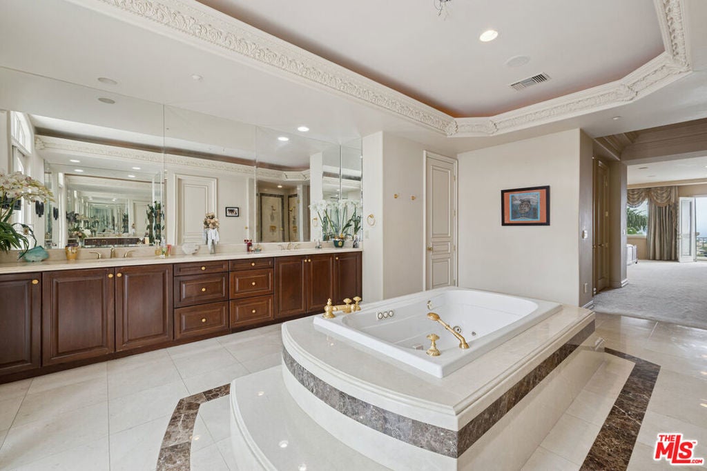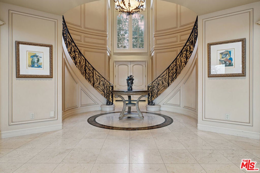 HUGE REDUCTION OVER $900k Since Originally Listed ! Located in the exclusive, 24 hour guard-gated community of Mulholland Park, this magnificent, double lot, 6-bedroom, 8-bath estate offers unparalleled luxury and privacy on an exceptional double flag lot spanning over 2.67-acres w/ expansive views! Highly desirable Plan 6 model. 100 ft Setback private driveway, oversized, & dual entry two car garages. Hand carved crown mouldings, attention to detail wainscotting, and so much more. Situated on a quiet cul-de-sac street, This expansive residence spans over 6000 square feet and features breathtaking panoramic vistas of the San Fernando Valley and The Mulholland Country Club. Key features are Floor-to-ceiling windows and multiple balconies capture panoramic views of the verdant golf course and the valley below. All creating a stunning backdrop for both daily living and special occasions. Grand-scale entertaining: The dual startcase formal entry opens to a dramatic great room with soaring ceilings, a formal dining area, and a spacious, modern kitchen with granite countertops and high-end appliances. All custom made dual wrought iron winding spiral staircase leads to all upper bedrooms, luxurious master retreat, complete with a cozy fireplace, his-and-hers private water closets, expansive walk-in closets, and private balconies overlooking the pool and valley. Generous living spaces: In addition to the primary suite, the home includes four large bedroom suites, all en-suite full baths with their own private balconies, a guest/maids' quarters, a private office, and a state-of-the-art movie theater. Park-like grounds: The home is set on a massive all usable lot providing a serene and private outdoor oasis. The grounds feature a pool, spa, entertaining areas, room for a sports court area, and an expansive lawn perfect for relaxing and enjoying the scenery. This property is a very unique and special "hand picked" lot, all oversized for large parties and entertaining with elegance and privacy. Enjoy this offering as a truly magnificent living experience in one of Tarzana's most prestigious communities. A must see of a lot and prime location!