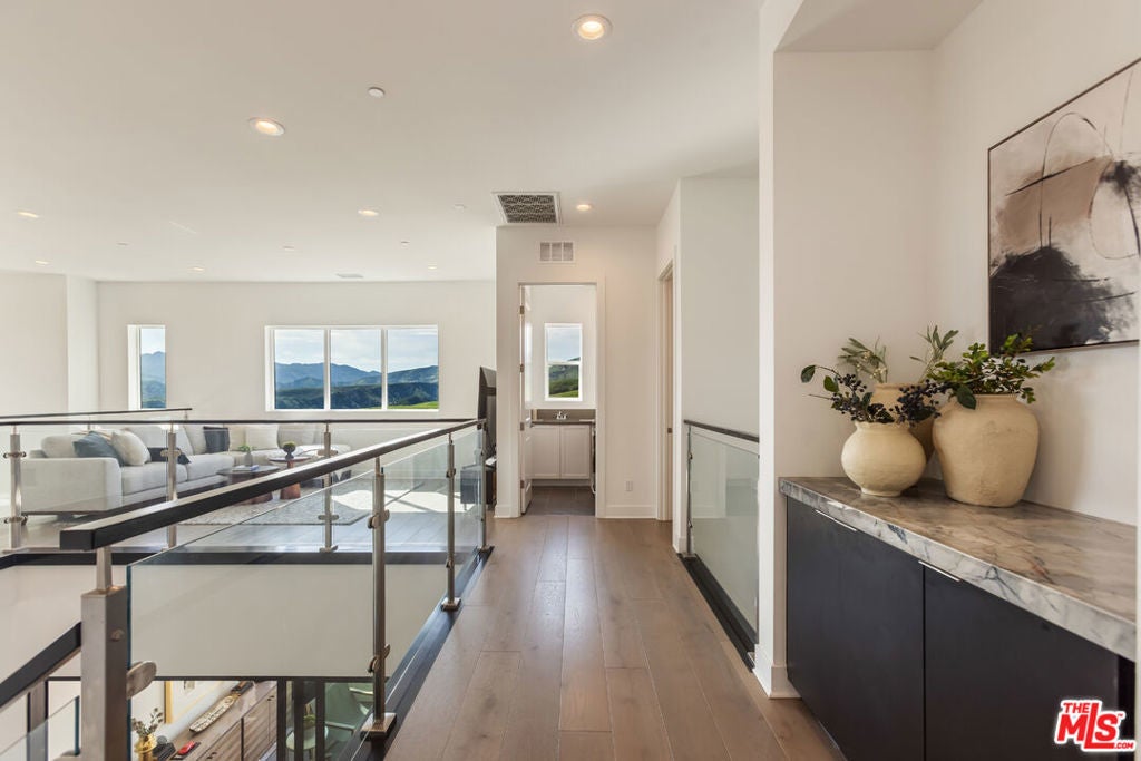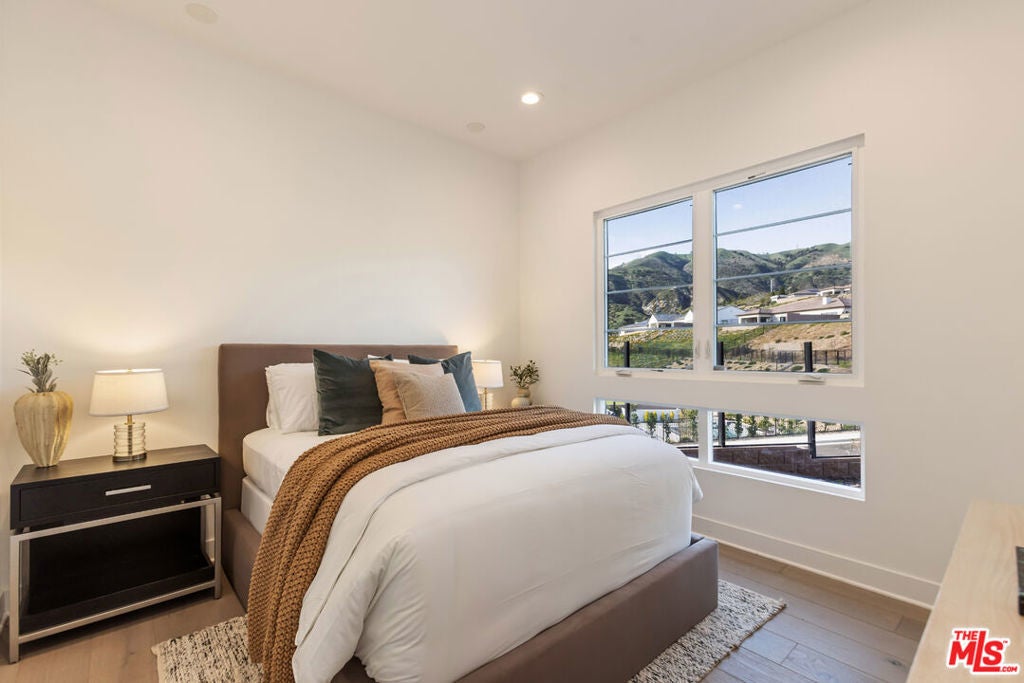 WALK INTO INSTANT EQUITY - recently appraised at $3.25M, this show stopping estate is now listed below value, presenting a rare chance to own one of Porter Ranch's finest homes. PANORAMIC UNOBSTRUCTED VIEWS, LARGEST LOT SIZE in the entire development, and PRIVACY, PRIVACY, PRIVACY 20668 W Hummingbird Ct checks every box. Nestled on a 0.75-acre lot, this fully customized 5-bedroom, 5.5-bathroom residence blends modern sophistication with California indoor-outdoor living.The heart of the home is built for entertaining: a double-wide Blue Ijen Quartzite waterfall island anchors the chef's kitchen, complete with top-tier appliancesWolf 6-burner range, SubZero fridge, premium dishwasher, trash compactor, high-speed hood and elegant Kohler fixtures with a lifetime warranty. Premium soft-close cabinetry, integrated smart systems, and panoramic sliding doors create seamless function and design.Every inch of the ENTIRE HOUSE IS UPGRADED: floating staircase, custom sound system inside and out, light automation, prewired bedrooms, high-end security with cameras, and premium finishes throughout. Main spaces feature sleek porcelain tile, while all bedrooms boast rich hardwood floors. Each ensuite bathroom is wrapped in stone or marble for a five-star feel.With a downstairs guest suite, a large home office with upgraded sliders, and a 110-ft private driveway this layout is flexible and future-proof. Whether you're sipping morning coffee from the private primary balcony or enjoying sunset dinners with doors wide open, this home was designed to embrace its stunning surroundings.Don't miss this rare opportunity to own an estate that truly redefines luxury, space, and privacy in Porter Ranch. Property available for lease at $10,995.