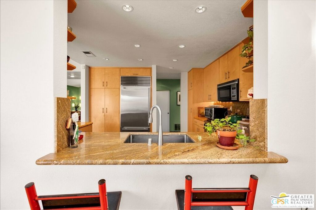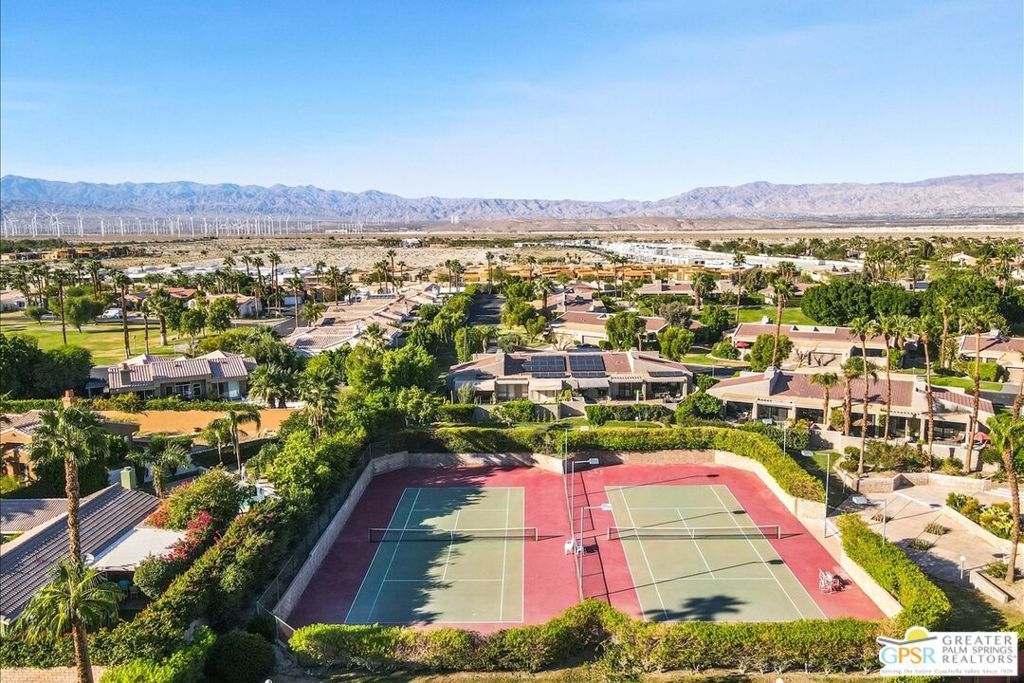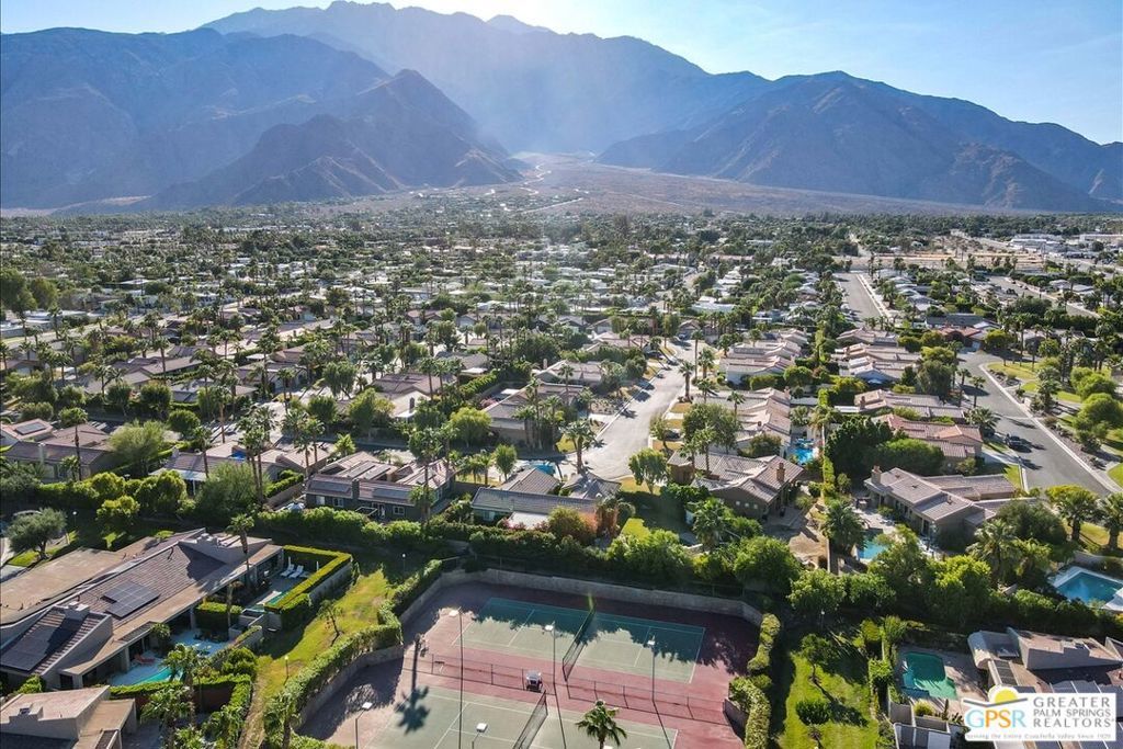 26 SOLAR OWNED PANELS. Nestled in the heart of Palm Springs, Sundance Resort is an exclusive gated community of just 60 single-level pool homes built in 1982 for members of the Dallas Cowboys. Each residence features its own private pool, spa, and walled yard, offering the ultimate in luxury, privacy, and resort living. This 2BD/2BA, 1,742 SF home sits in one of the community's best locations, showcasing unobstructed mountain views with no power lines, abundant natural light, and a spacious two-car garage with direct access. The single-story floor plan ensures easy living with no stairs and no neighbors above or below. Homeowners enjoy access to tennis courts, a racquetball court, clubhouse, gym, etc, all surrounded by over 17 acres of landscaped greenbelts and dog parks. HOA dues include earthquake insurance (shell), roof maintenance, water, trash, landscaping, and access to all amenities. Situated on fee simple land (you own it!), Sundance allows short-term rentals with no restrictions (please verify), making it an ideal investment opportunity. Just minutes from downtown Palm Springs, residents enjoy world-class shopping, restaurants, art galleries, and entertainment while returning home to a tranquil resort retreat. Sundance Resort delivers the perfect balance of luxury, privacy, and investment potential, a rare chance to own one of Palm Springs' most desirable private pool homes.