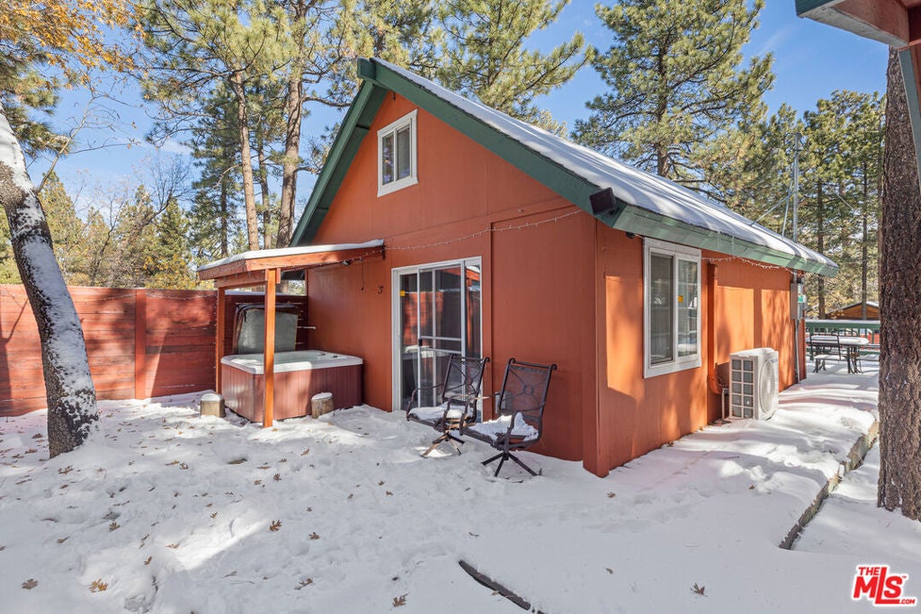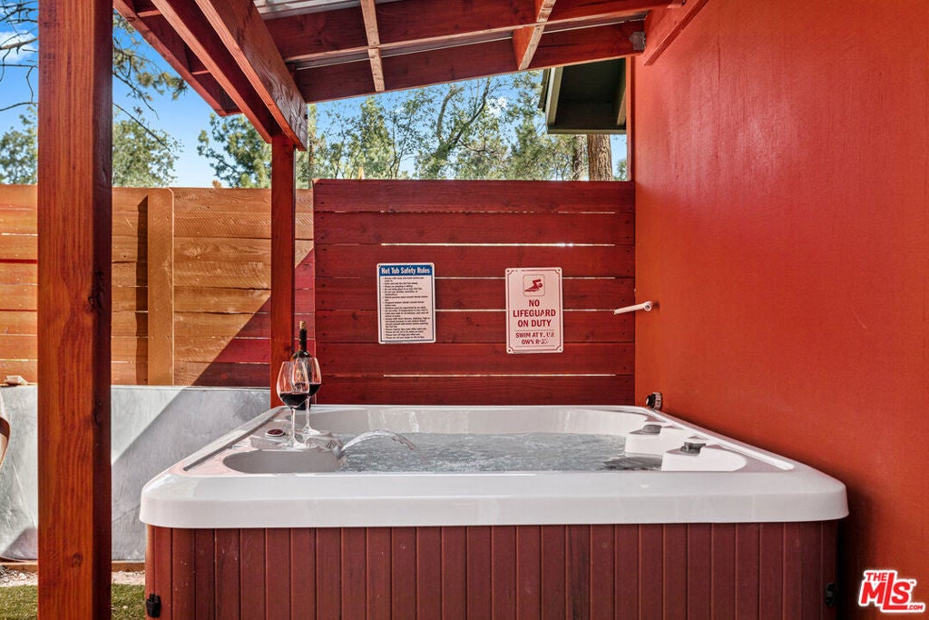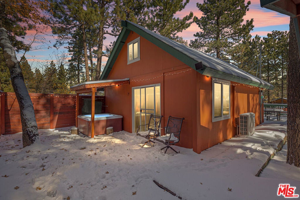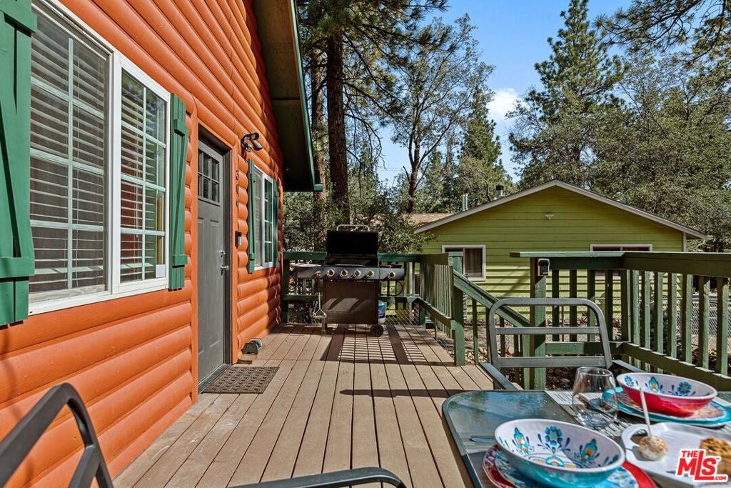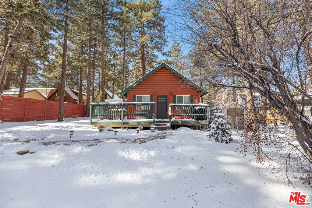 This idyllic cabin (Calipe Cottage) is the quintessential mountain cottage set amongst majestic trees. The house has been lovingly renovated in full and delightfully finished. This cozy property has a relaxing bedroom, a sleeping loft, with a chic bathroom featuring a steam shower and fully equipped designer kitchen. It is a magical retreat for those escaping the hustle and bustle of City Life. Arriving at the home, the large 5,000 sqft lot provides ample parking. The expansive front and wrap-around porch is the perfect spot to indulge in alfresco dining and entertaining your family and friends. Upon entering the home, you will note the living room has high vaulted ceilings and recessed lighting. The bright kitchen has plenty of storage, quartz countertops and all appliances including a stackable washer / dryer. The cozy loft with its king-size bed is a delightful space for a deep sleep. The main bedroom has access to a quiet rear terrace, where a soak in the spa is the perfect way to unwind. The house is being sold fully furnished, turnkey. It is tranquil and filled with natural light. The home features two electric fireplaces setting the ideal ambiance no matter the weather outside. Fully equipped with air conditioning and heating, Ring and cameras. Perfect as a family retreat, a getaway for friends or a wonderful vacation rental that's ready immediately. Minutes to all that Big Bear has to offer, dining, hiking, biking and lake activities. A very short drive will see you on the slopes of Snow Summit and Big Bear Mountain Ski Resort. What better way is there to unwind after an adventurous day than at this magical property surrounded by the serene sights and sounds of nature?