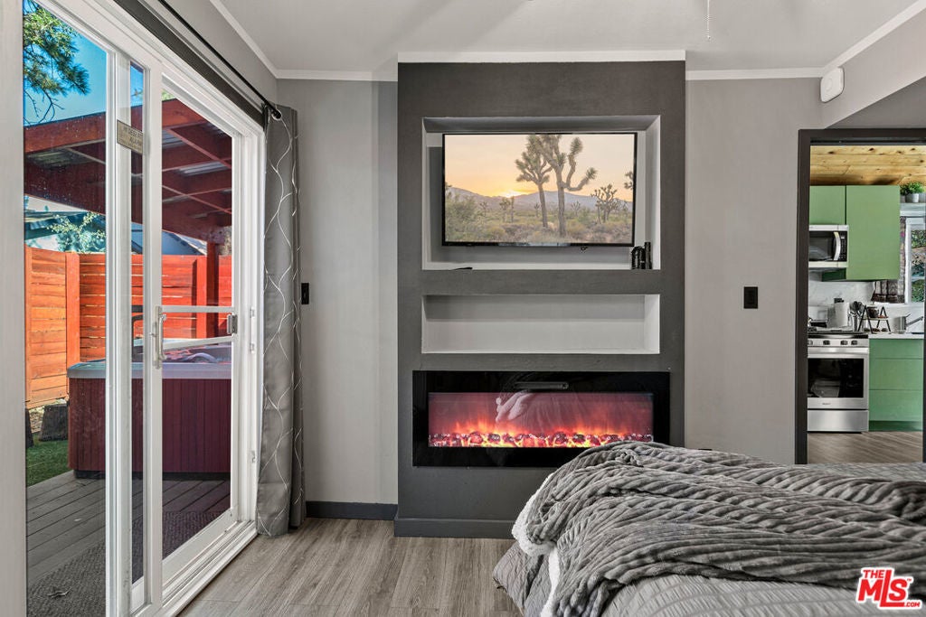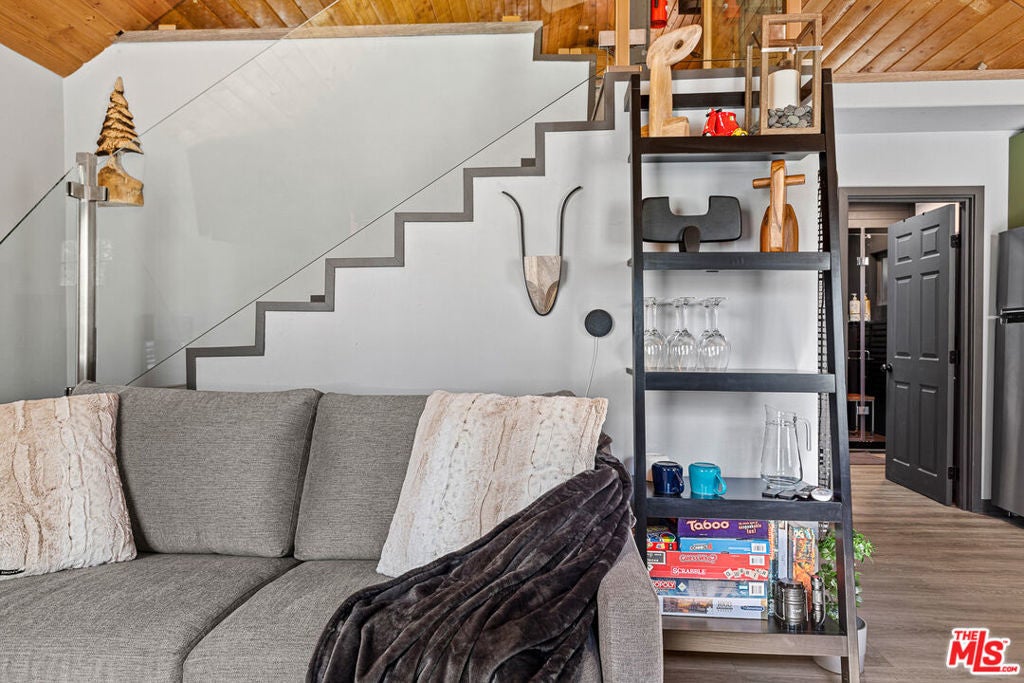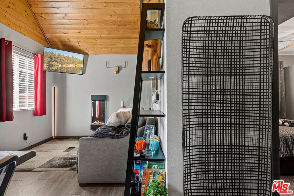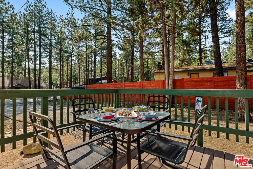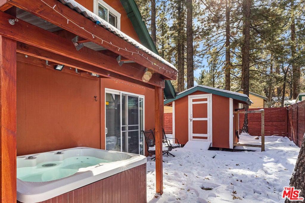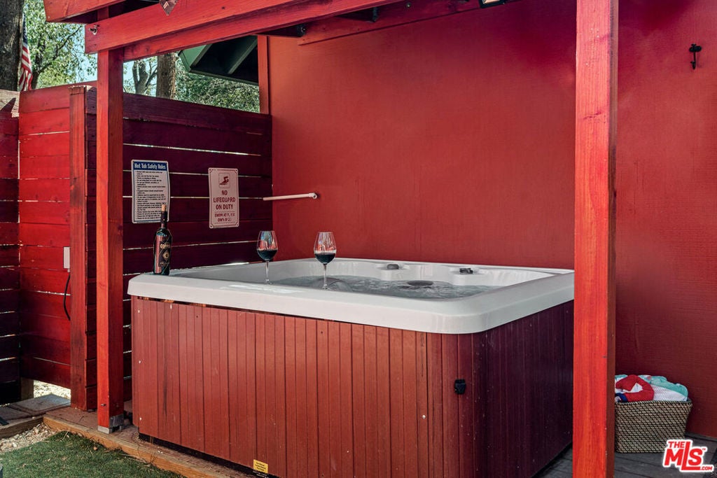 This idyllic cabin (Calipe Cottage) is the quintessential mountain cottage set amongst majestic trees. The house has been lovingly renovated in full and delightfully finished. This cozy property has a relaxing bedroom, a sleeping loft, with a chic bathroom featuring a steam shower and fully equipped designer kitchen. It is a magical retreat for those escaping the hustle and bustle of City Life. Arriving at the home, the large 5,000 sqft lot provides ample parking. The expansive front and wrap-around porch is the perfect spot to indulge in alfresco dining and entertaining your family and friends. Upon entering the home, you will note the living room has high vaulted ceilings and recessed lighting. The bright kitchen has plenty of storage, quartz countertops and all appliances including a stackable washer / dryer. The cozy loft with its king-size bed is a delightful space for a deep sleep. The main bedroom has access to a quiet rear terrace, where a soak in the spa is the perfect way to unwind. The house is being sold fully furnished, turnkey. It is tranquil and filled with natural light. The home features two electric fireplaces setting the ideal ambiance no matter the weather outside. Fully equipped with air conditioning and heating, Ring and cameras. Perfect as a family retreat, a getaway for friends or a wonderful vacation rental that's ready immediately. Minutes to all that Big Bear has to offer, dining, hiking, biking and lake activities. A very short drive will see you on the slopes of Snow Summit and Big Bear Mountain Ski Resort. What better way is there to unwind after an adventurous day than at this magical property surrounded by the serene sights and sounds of nature?