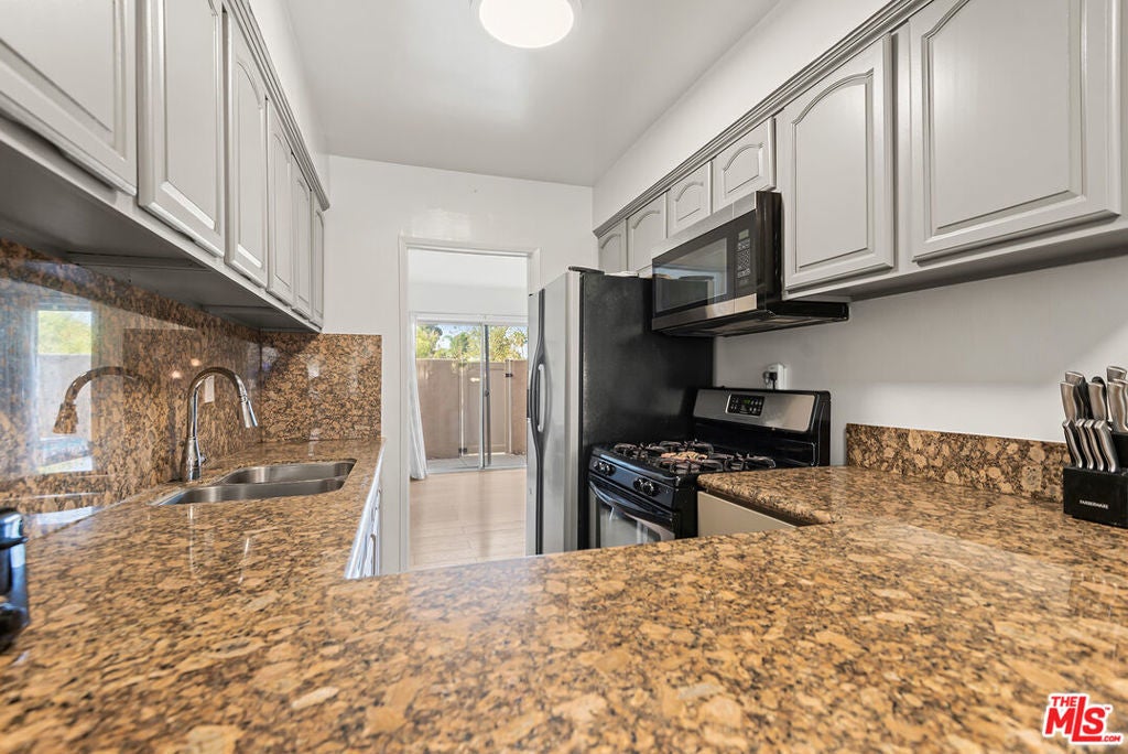Welcome to 6221 Morse Avenue a stylishly updated 3-bedroom, 2-bathroom townhome offering comfort, convenience, and California living at its finest. Ideally located in the heart of North Hollywood, this home sits just steps from the pool and features multiple private outdoor spaces. Nestled in a beautifully maintained, resort-style community with three sparkling pools and lush landscaping, this residence blends modern design with a relaxed, indoor-outdoor lifestyle. Inside, the spacious living area flows seamlessly into the dining room and a fully updated chef's kitchen complete with stainless steel appliances, granite countertops, a breakfast bar, and ample cabinetry. The smart layout includes a downstairs bedroom and full bathroom, with direct access to a large private patio perfect for relaxing or entertaining. Upstairs, you'll find two additional bedrooms, a second full bathroom, and a convenient laundry area. A private balcony overlooks the community pool, offering a peaceful retreat. Additional features include central air and heat, two separate parking spaces, and access to community amenities such as a recreation room and children's play area. Conveniently located near top-rated schools and major freeways (170, 101, and I-5), and just minutes from NoHo West Shopping Center, L.A. Valley College, parks, and the Metro Orange Line.