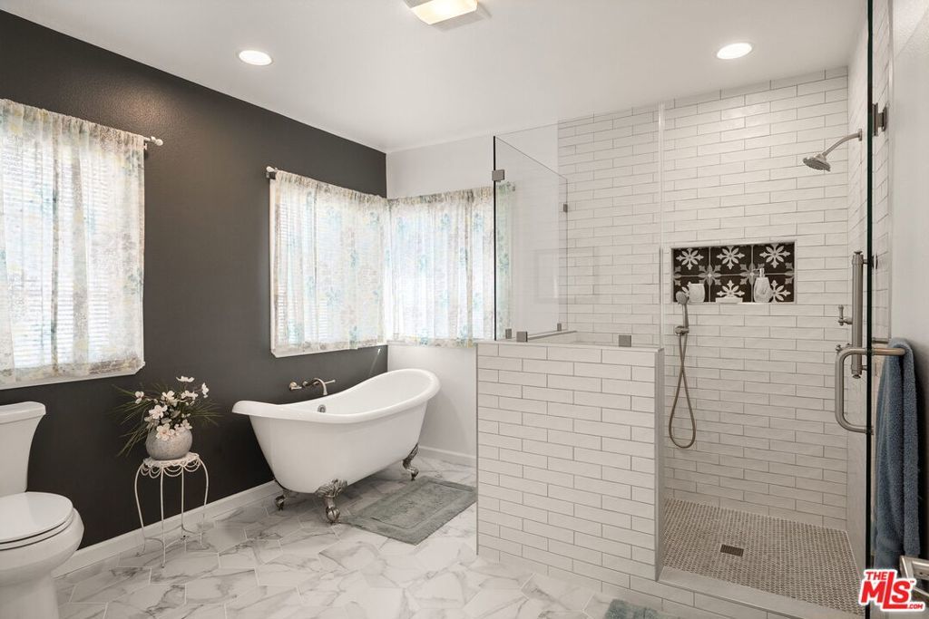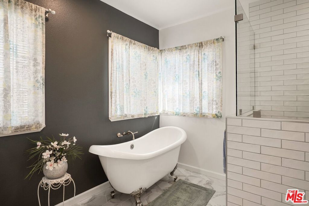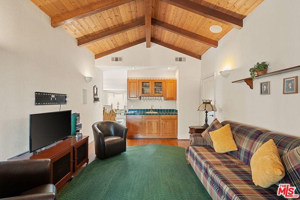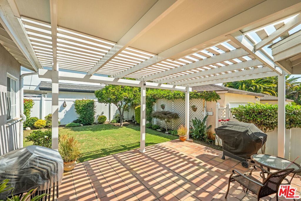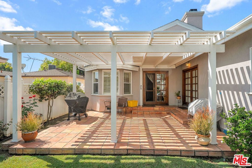 A charming West LA traditional gem nestled in the sought-after Clover Elementary School district. This 3-bedroom, 2-bathroom home greets you with a bright and airy living room, where sunlight pours through abundant windows and flows seamlessly into the dining area. Hardwood floors enhance the warmth and character of the living and dining areas, leading into a fully equipped kitchen with generous cabinetry and a breakfast nook framed by a beautiful bay window. A versatile bonus den features vaulted ceilings with exposed wood beams, a brick fireplace, and a wet bar - ideal for entertaining or relaxing evenings at home. The spacious primary suite offers a serene retreat with direct access to the backyard and a recently remodeled en-suite bathroom showcasing a dual sink vanity, a soaker tub, and a glass shower. Additional highlights include generous guest rooms, a dedicated laundry room, and an attached 2-car garage. Enjoy Southern California living at its best in the private backyard featuring a pergola-covered patio along with a generous grassy lawn.