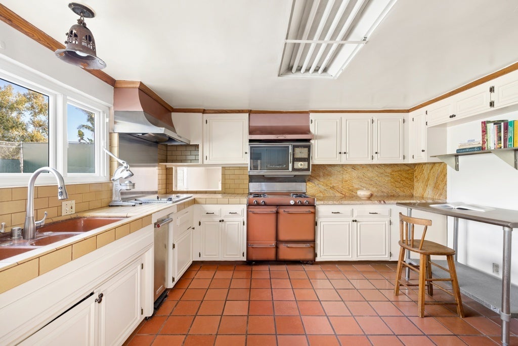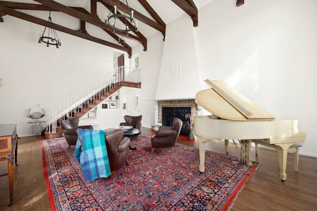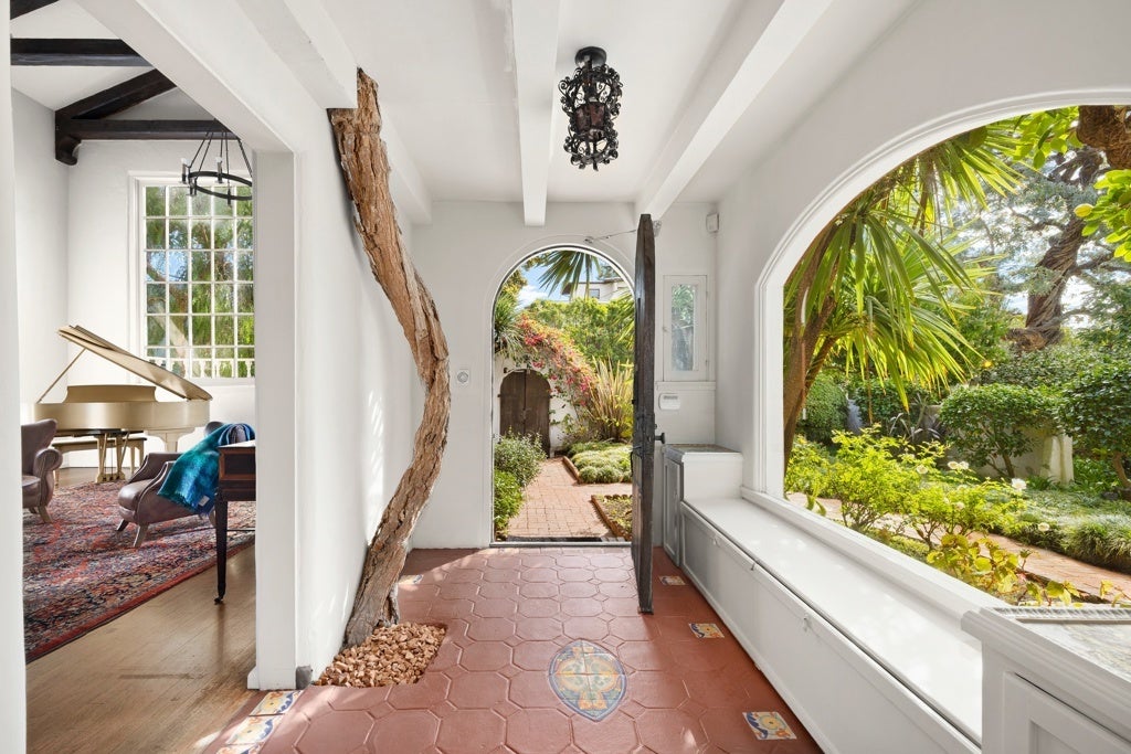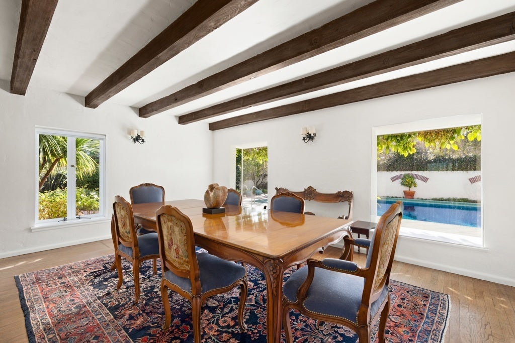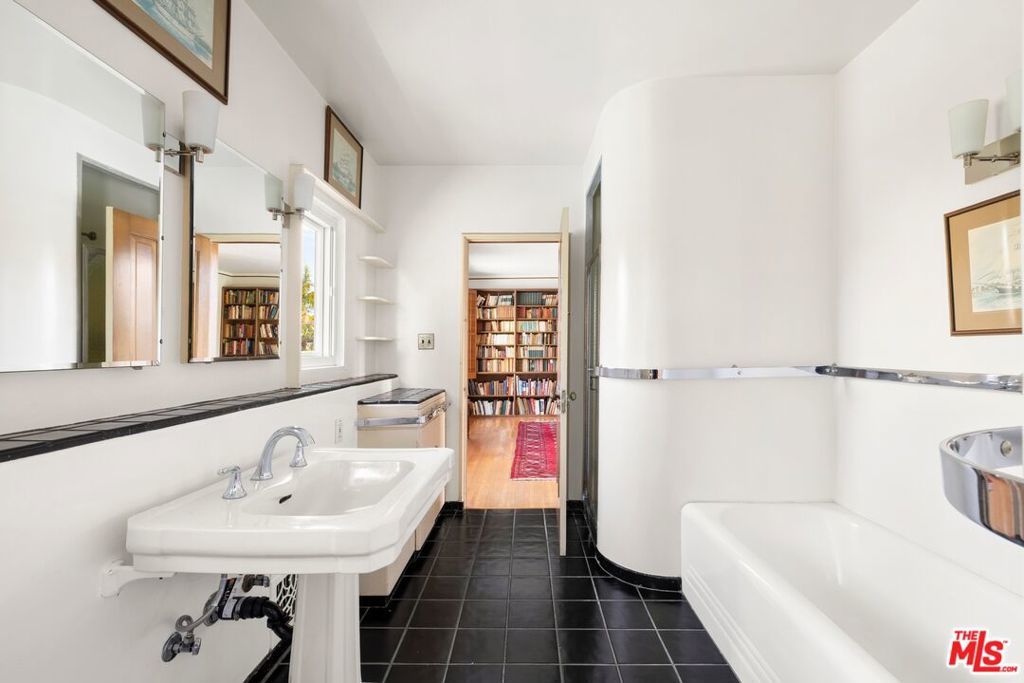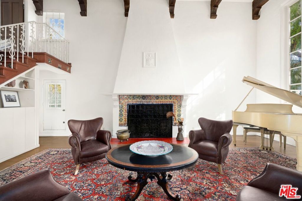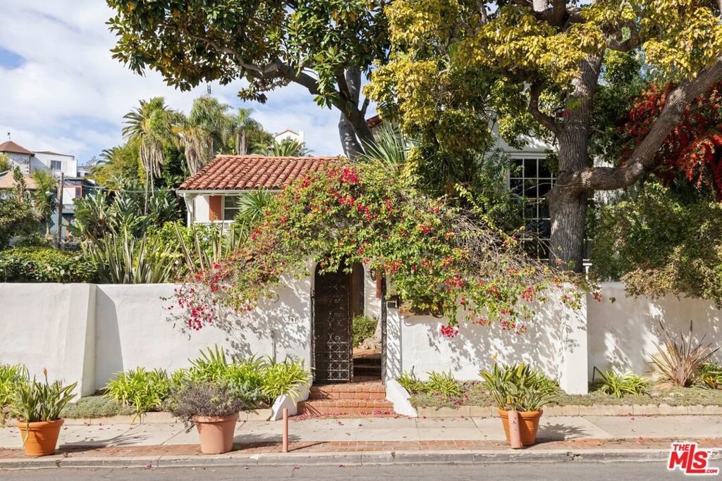 A rare offering in one of Los Angeles' most beloved enclaves, this historic Mediterranean Spanish estate is a celebrated architectural gem featured in noted publications and long admired for its timeless beauty. Set behind private gates in Santa Monica Canyon, the residence is enveloped by original, meticulously preserved Mediterranean gardens. Mature landscaping, sculpted pathways, and enchanting outdoor rooms create a serene world of their own, offering multiple spaces for intimate gatherings, relaxed afternoons, and elevated entertaining. Inside, the home's rich heritage unfolds with striking authenticity. The grand living room showcases soaring open-beam ceilings, hand-hewn and architecturally significant, adding both drama and warmth. A substantial wood-burning fireplace, framed in original hand-carved stone and topped with the estate's historic crest, anchors the space with historic gravitas. Sunlight streams through oversized windows and French doors, illuminating original hardwood floors, textured plaster walls, and finely crafted ironwork that echo the home's Spanish Revival pedigree. Every room enjoys a visual connection to the gardens, reinforcing the property's indoor-outdoor harmony. The bedrooms are exceptionally spacious, each appointed with charming original details and luxurious, preserved bathrooms featuring classic tilework and period fixtures. The primary suite is a private sanctuary, complete with an adjoining nursery or office, a dressing room, walk-in closet, and a romantic balcony that captures sweeping ocean views, an idyllic backdrop morning and night. With its uncommon blend of architectural integrity, elegant interiors, and lush garden settings, 311 Amalfi Drive stands as a true Canyon masterpiece, a peaceful, storied estate offering beauty, privacy, and effortless sophistication in one of the Westside's most desirable neighborhoods.