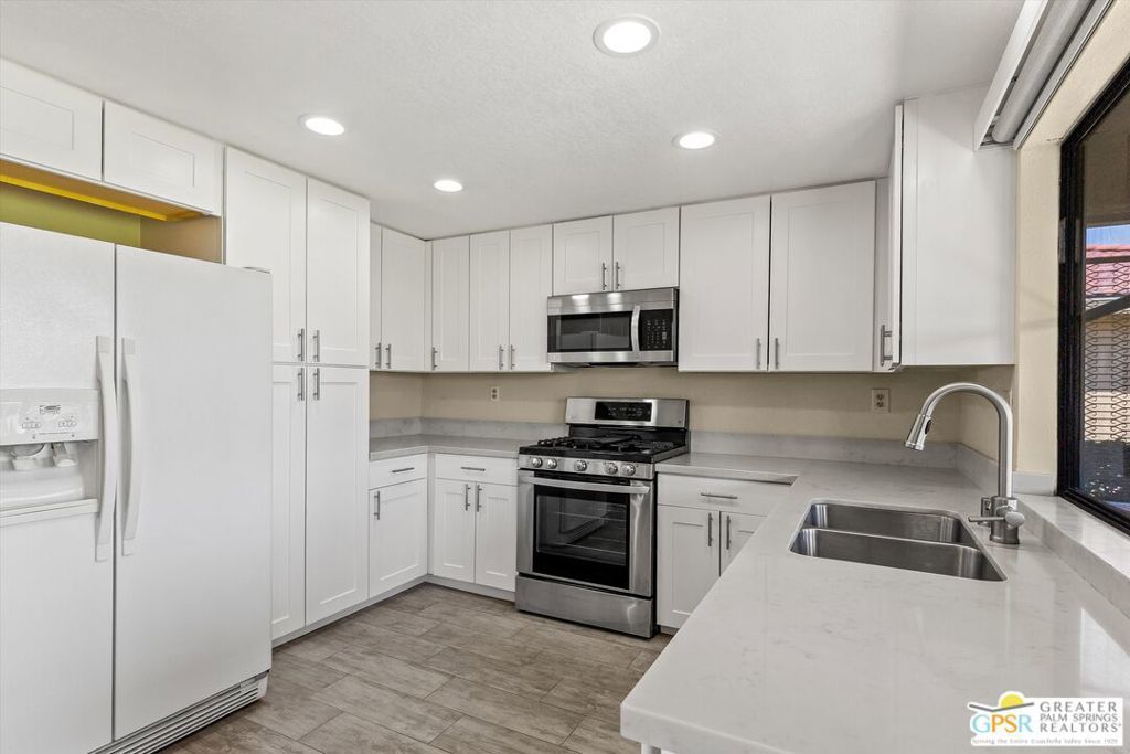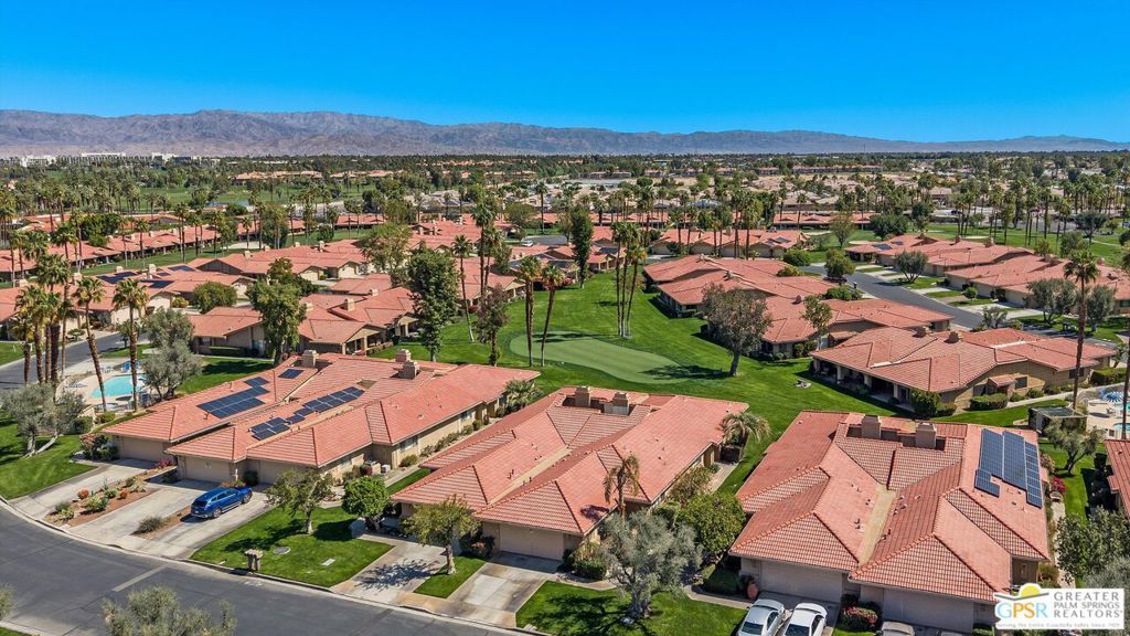 Welcome to 34 Camino Arroyo Place in Chaparral Country Club, offering a blend of luxury and leisure within a vibrant community. This fully furnished end unit 3-bedroom, 2-bathroom Los Feliz residence spans 1,950 square feet and features updated kitchen and tile flooring, modern remodeled bathrooms, an expansive great room with fireplace and a finished garage. New roof installed May 2025. Inside discover high ceilings and a spacious layout for both relaxation and entertaining. Enjoy serene mornings or unwind in the evenings on your private patio, overlooking the meticulously maintained putting green of a Ted Robinson-designed 18 hole golf course. The community's amenities cater to diverse interests, including tennis and pickleball courts, 21 pools and spas, a well equipped fitness center with classes, and various social clubs. Congregate in the convivial and approachable atmosphere of the clubhouse, bar, lounge, and restaurant. The well manicured grounds and panoramic views complete the sophisticated yet inviting lifestyle offered by this social, friendly community. Makes a great home, winter home, or seasonal rental with repeat tenants. Chaparral Country Club is one of a kind located in close proximity to the best of El Paseo, Palm Desert and Rancho Mirage. Note: as of 6/1/25, all new homeowners are charged a one-time Capital Contribution of $5000.