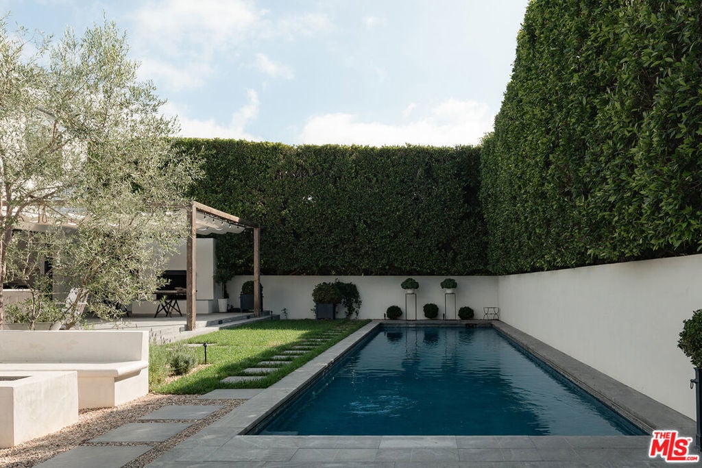 Welcome to 14952 Alva Drive, a meticulously designer done home in the prestigious Huntington Palisades. Recently renovated by Becker Studios, this gated residence sits behind mature landscaping, offering exceptional privacy and effortless sophistication. Thoughtfully designed to balance refined elegance with laid back coastal living, the home embodies a timeless sense of warmth and tranquility. Boasting just under 7,000 square feet of living space on a 12,000+ square foot lot, the property features six spacious bedrooms and eight bathrooms, perfectly suited for both everyday living and entertaining. The interiors are light-filled and inviting with high ceilings and incredible scale throughout. The bright, flowing floor plan showcases curated materials and meticulous craftsmanship, featuring a formal living and dining room, family room, separate media room, kitchen and dining area, two powder bathrooms, 5 spacious bedrooms with en-suite bathrooms upstairs including a separate office and a finished attic space. Light illuminates the main living area, where large glass doors frame views of olive trees and the lush backyard beyond. The chef's kitchen, anchored by custom cabinetry and high-end appliances, features sliding glass doors that open out onto the outdoor patio and fireplace, perfect for indoor and outdoor entertaining and dining al-fresco. A beautifully integrated pool house offers flexible use as a guest suite with a sauna and cold plunge, private office, or creative studio. Outside, the resort style grounds include a sparkling pool, cold plunge, outdoor shower and spa surrounded by multiple lounging and dining areas that invite year round enjoyment. Every detail of the home has been considered for comfort, function, and design integrity. State of the art technology, including a Crestron home automation system, enhances daily living with effortless control and modern convenience. A rare offering where architecture, comfort, and location converge in one of the city's most sought-after enclaves. This is an incredible opportunity to skip the rebuild and come back home to the one of the best homes in the Huntington.