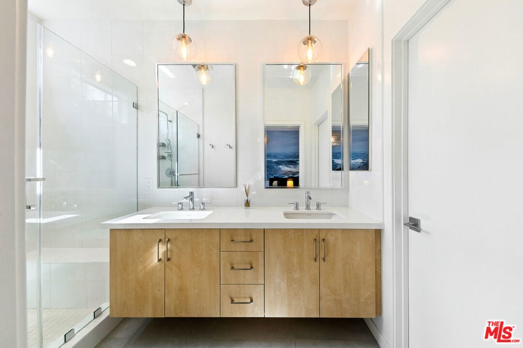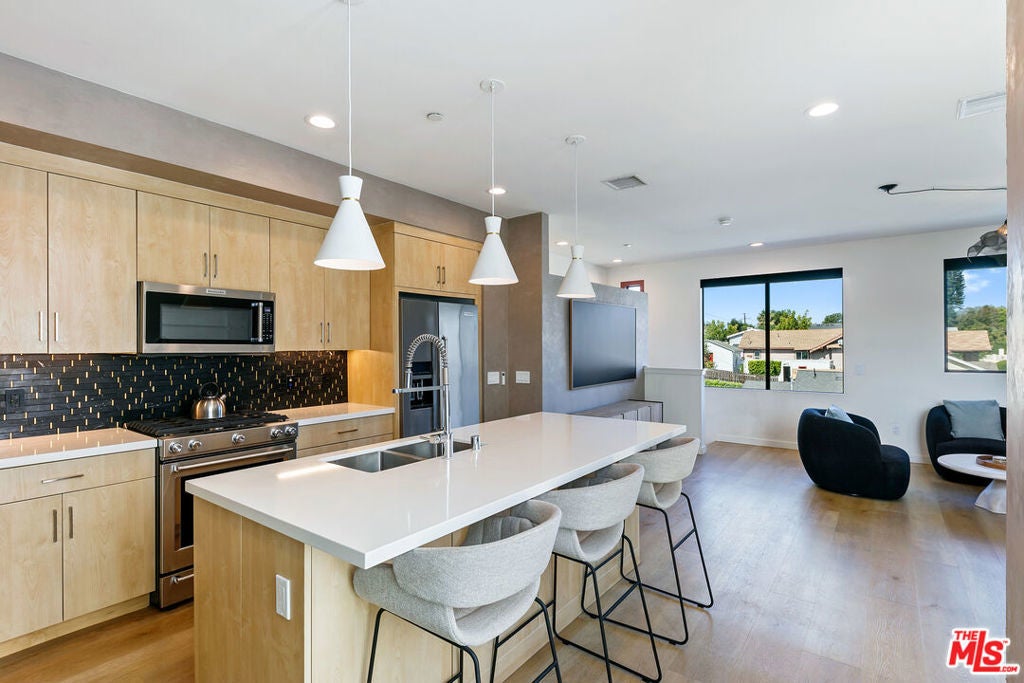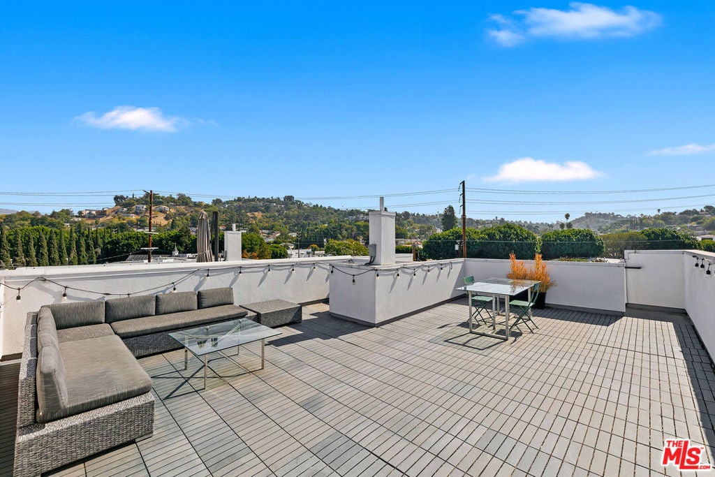 Welcome to modern Glassell Park living at its finest. Finished in 2020, this home sits elevated above the street, placing your main living space on the top floor where oversized windows capture natural light and frame beautiful San Rafael Hills views. The open floor plan seamlessly connects living, dining, and a sleek kitchen with breakfast bar and KitchenAid stainless steel appliances perfect for entertaining or everyday life. Recessed lighting throughout enhances the contemporary aesthetic, while the flow from indoor to outdoor living leads you to your private rooftop deck with breathtaking 360-degree views. Imagine sunset gatherings, morning coffee rituals, or weekend brunches with the cityscape as your backdrop. The thoughtful layout provides 2 ensuite bedrooms on separate levels for ultimate privacy, each with their own full bath featuring oversized showers and modern finishes. The primary suite is a true retreat with a large walk-in closet complete with custom built-ins. A versatile bonus den off the entry adapts to your lifestyle - home office, exercise room, creative studio, or guest space. The convenient half-bath on the main level keeps the flow effortless when hosting. Beyond the home's impressive features, the location delivers exceptional value. You're positioned in the heart of Glassell Park near Michelin-recognized Dunsmoor, beloved Bub & Grandma's bakery, The Grant's craft cocktails, and Verdugo Bar. The 2, 5, and 134 freeways provide quick connections to Downtown LA, Glendale, Burbank, Pasadena, Hollywood, and Eagle Rock. Add in a two-car attached garage with car charger outlet, eco-friendly dual-pane windows, and low-maintenance hard surface flooring, and you have a turnkey newer construction home that checks every box in one of Northeast LA's most vibrant neighborhoods.